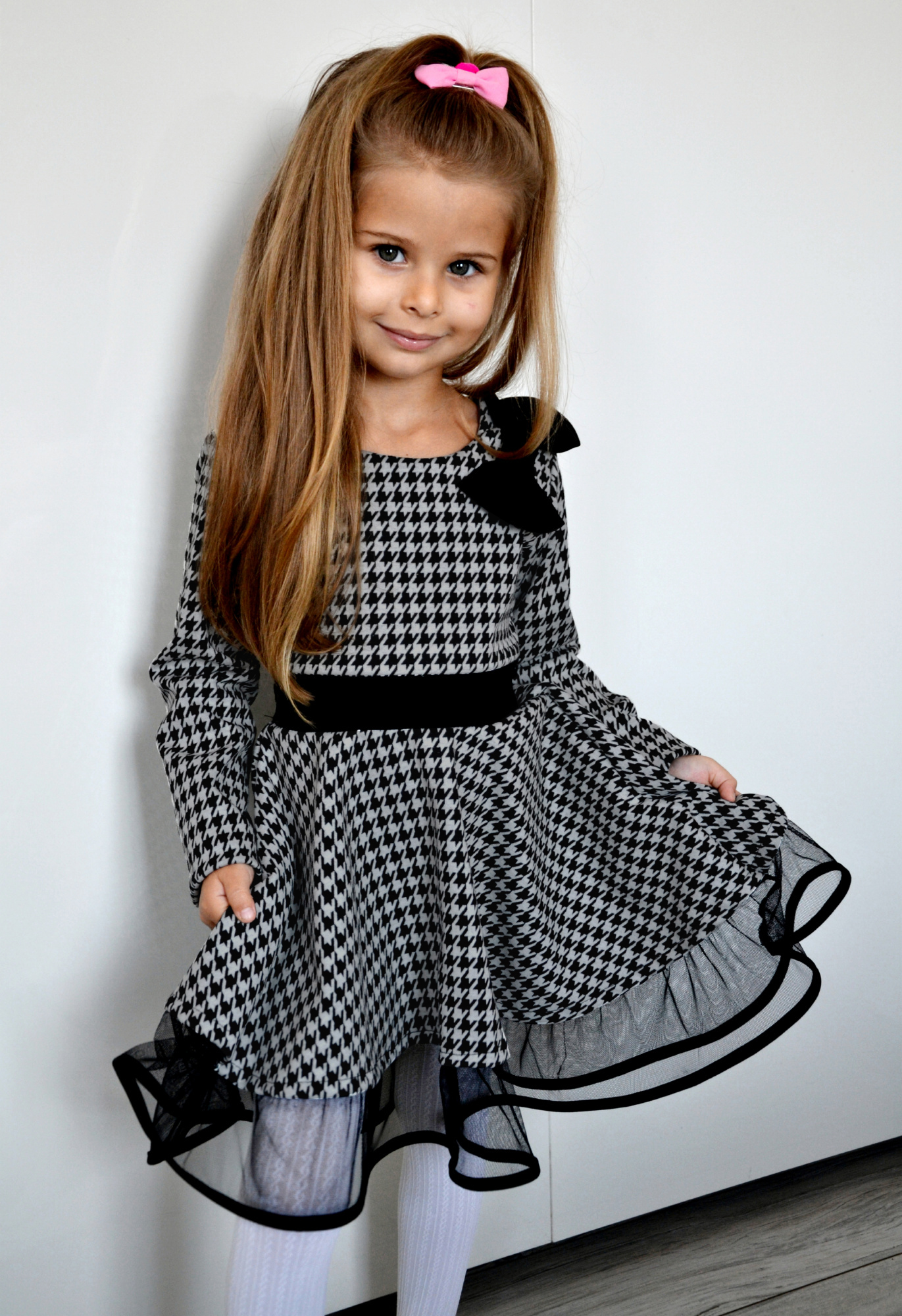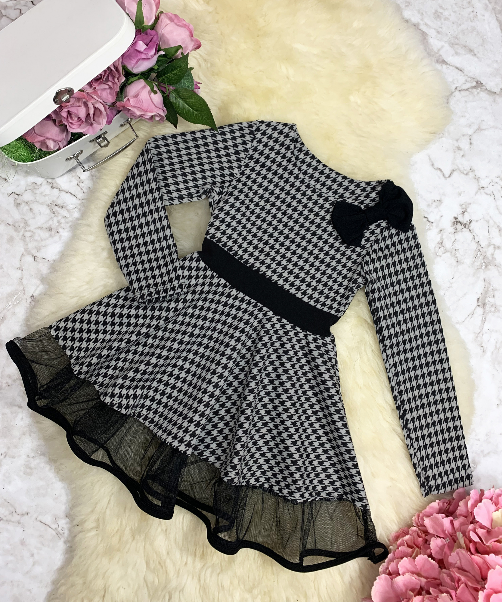 Sukienka Pepitka Elegance z Kokardką i Tiulem