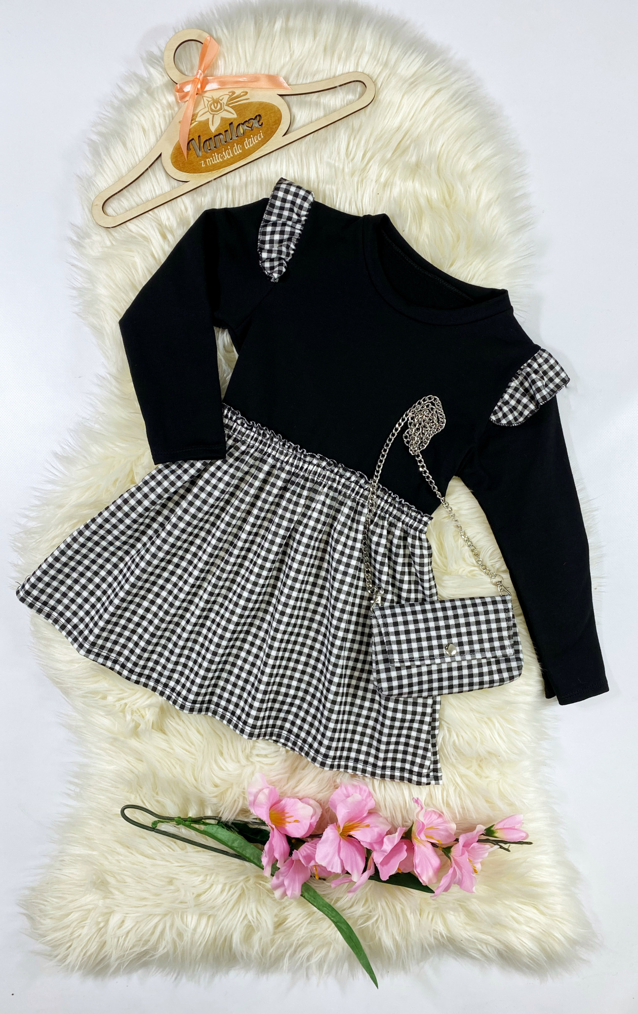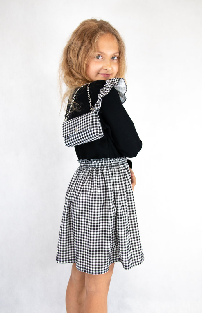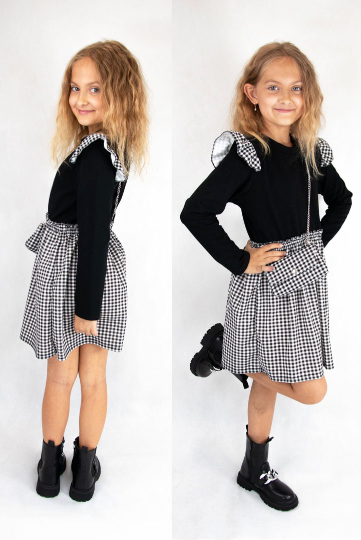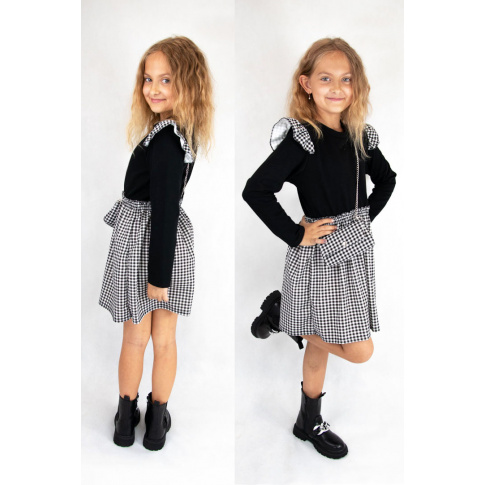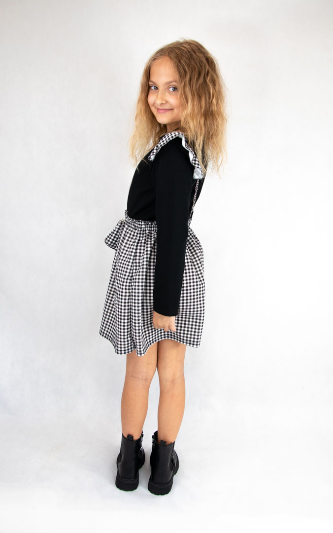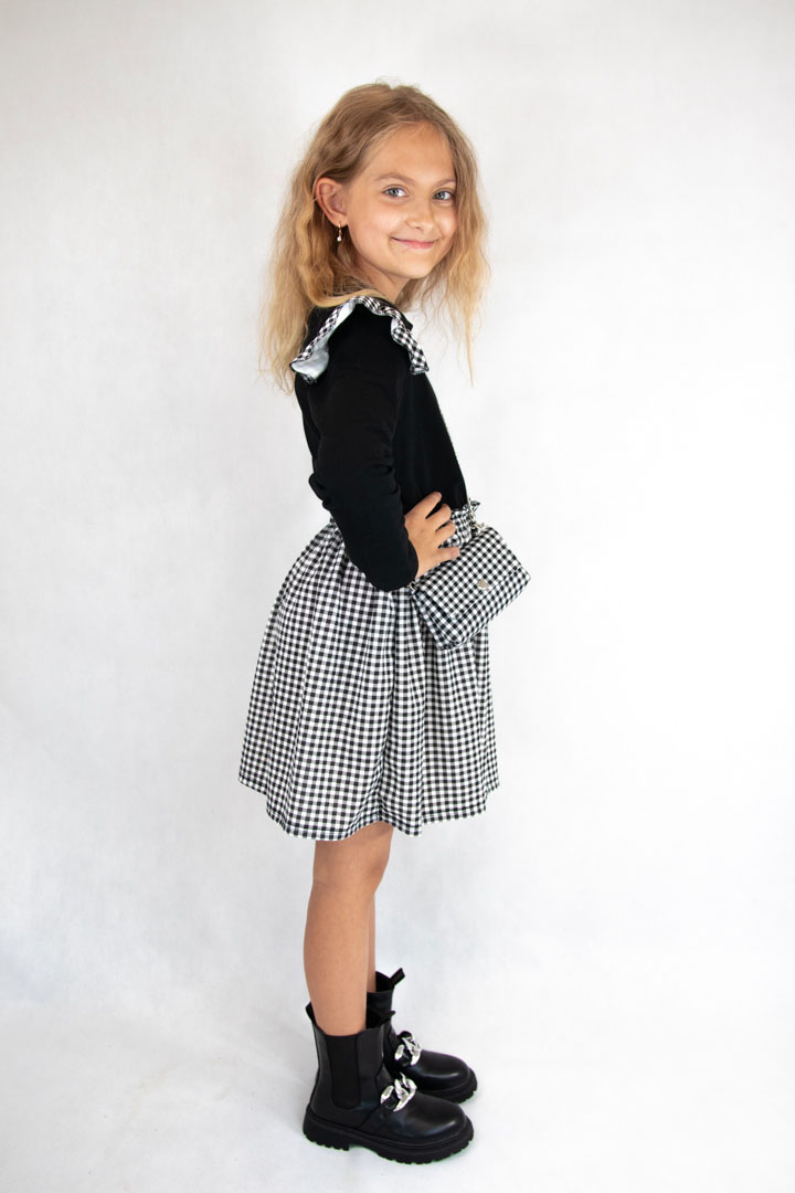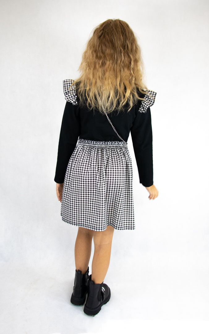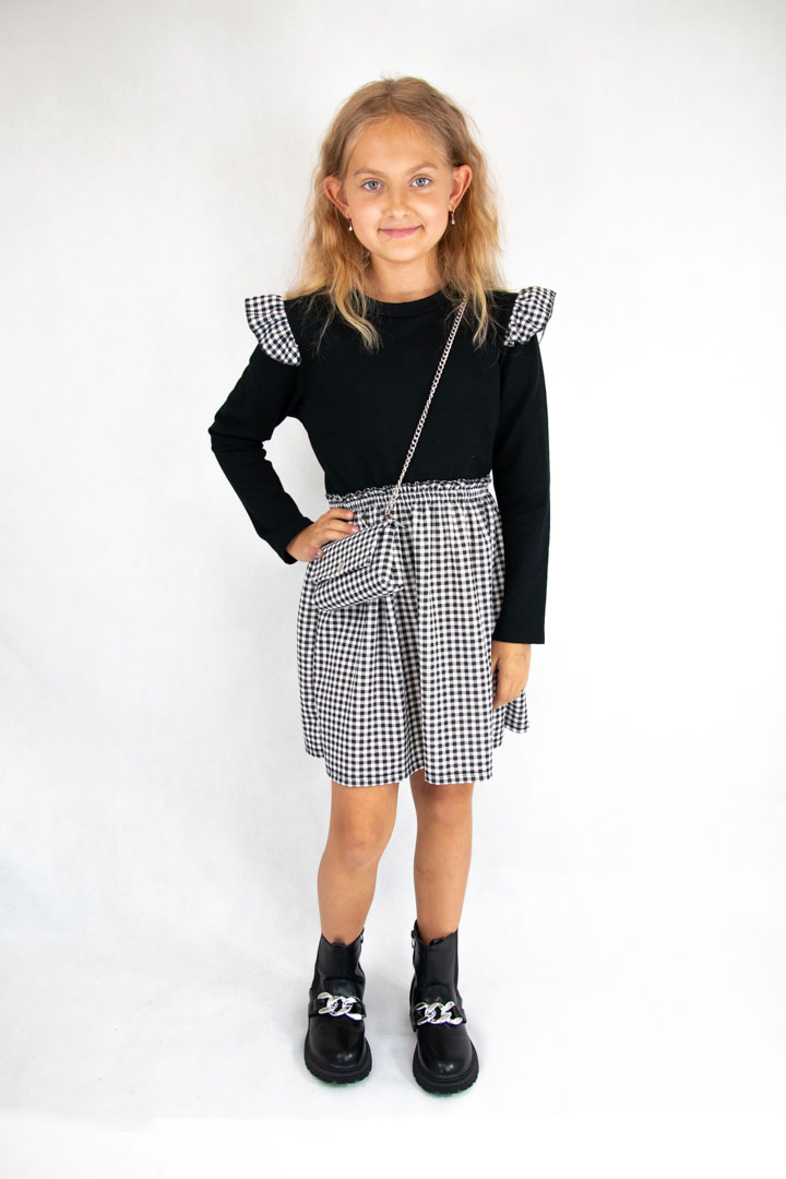 • góra sukienki w kolorze czarnym, dół w czarno-białą kratkę