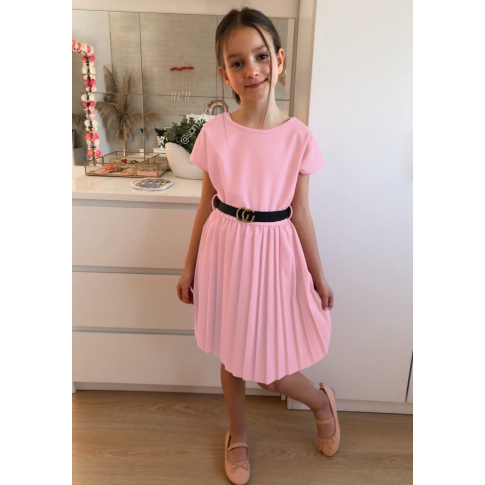 • elegancka sukienka z luźniejszą gładką górą , dół plisowany lekko rozkloszowany