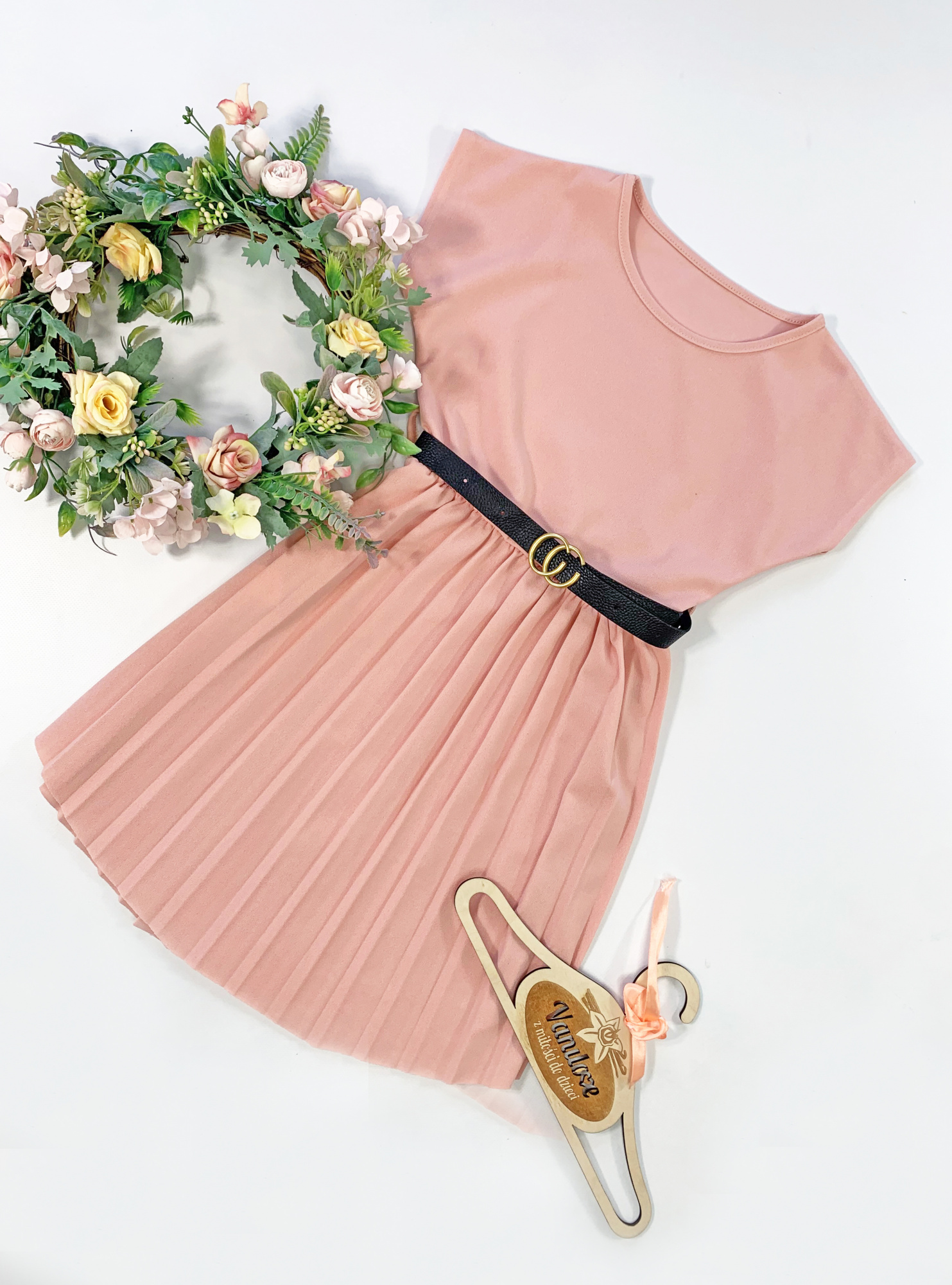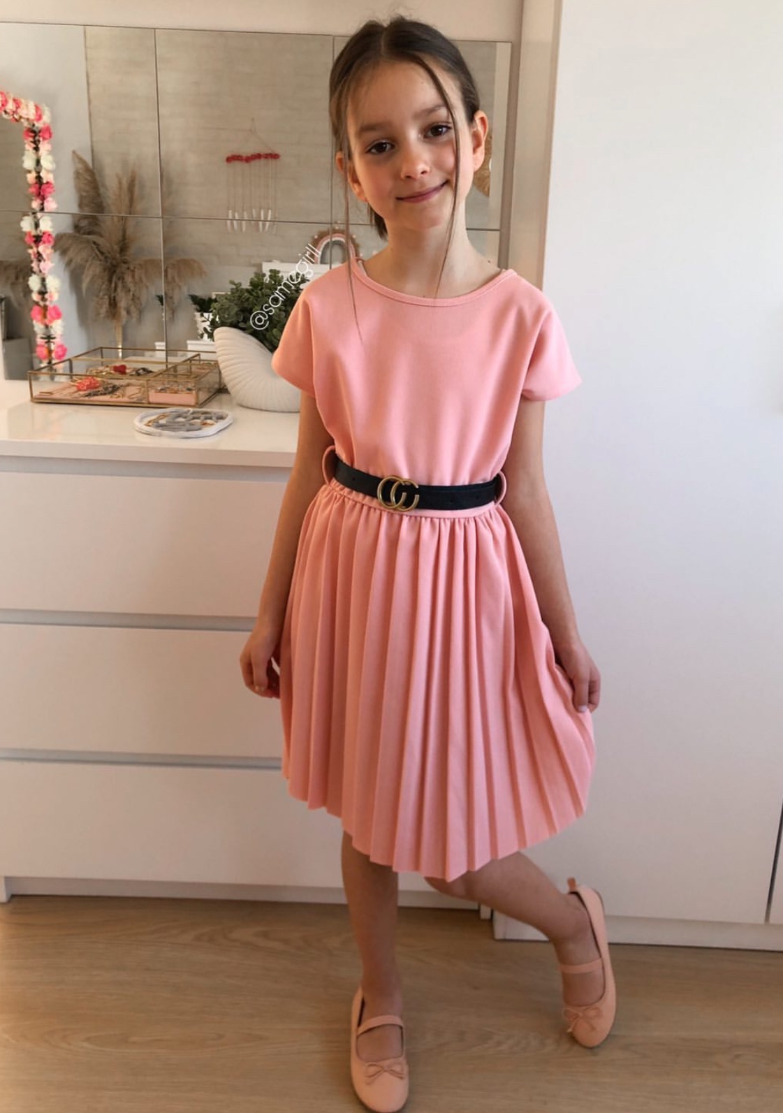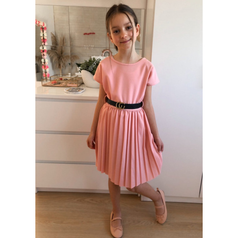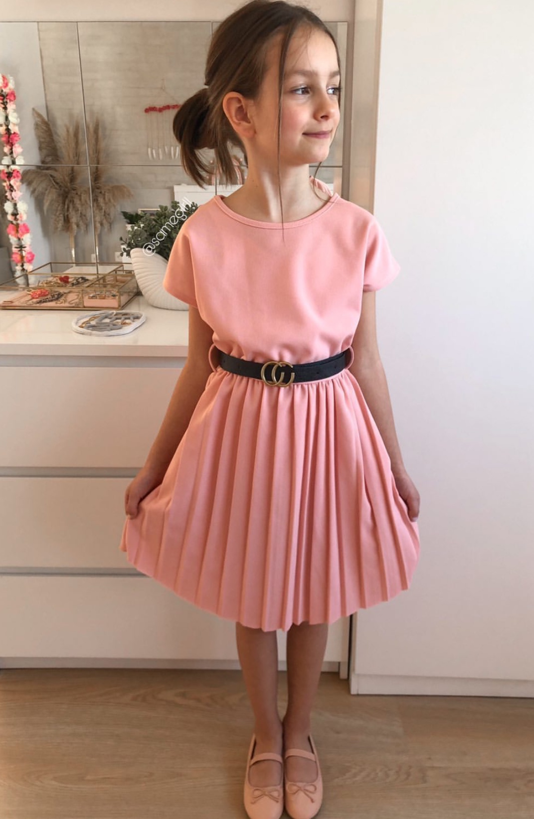 • elegancka sukienka z luźniejszą gładką górą , dół plisowany lekko rozkloszowany