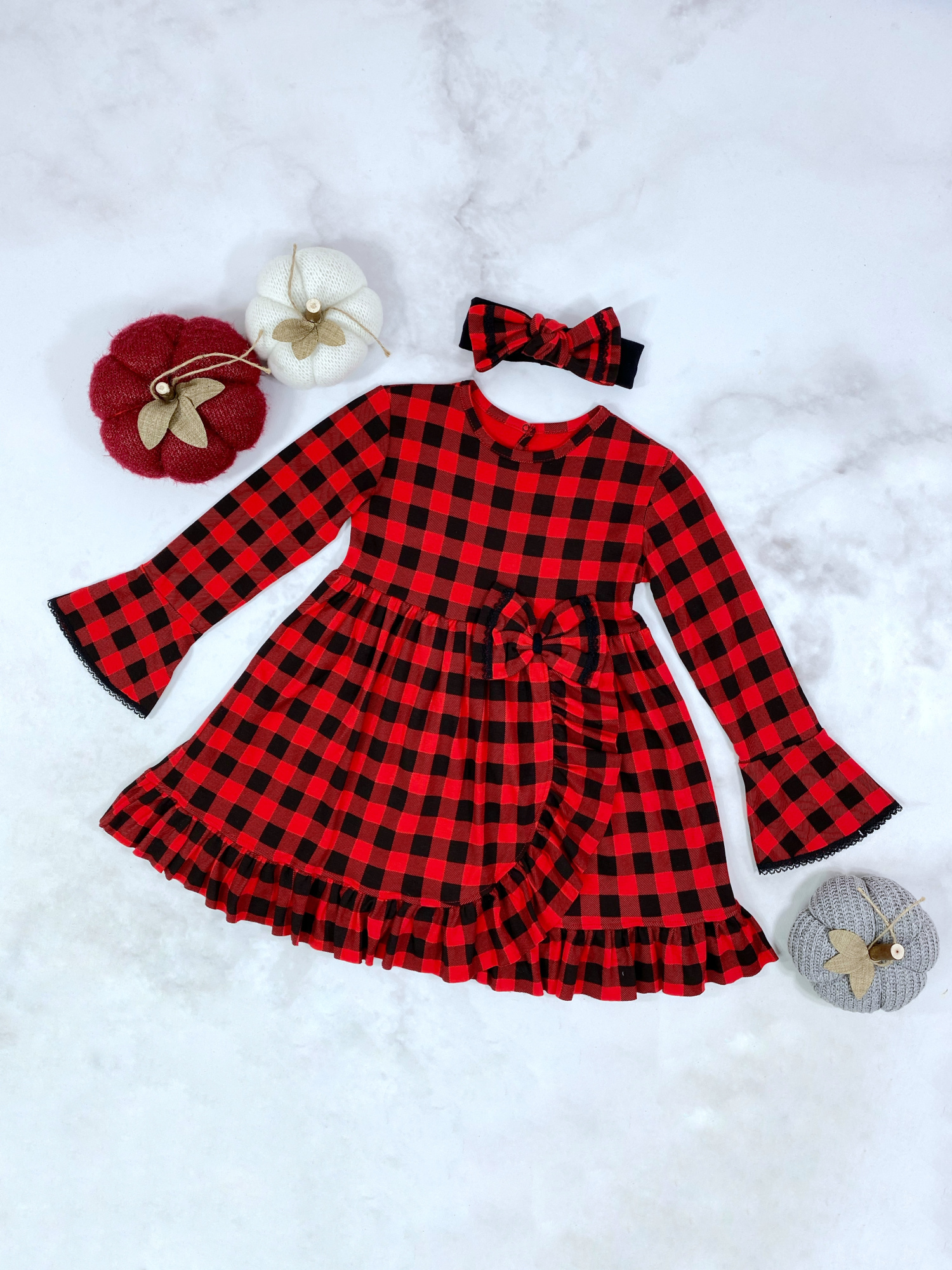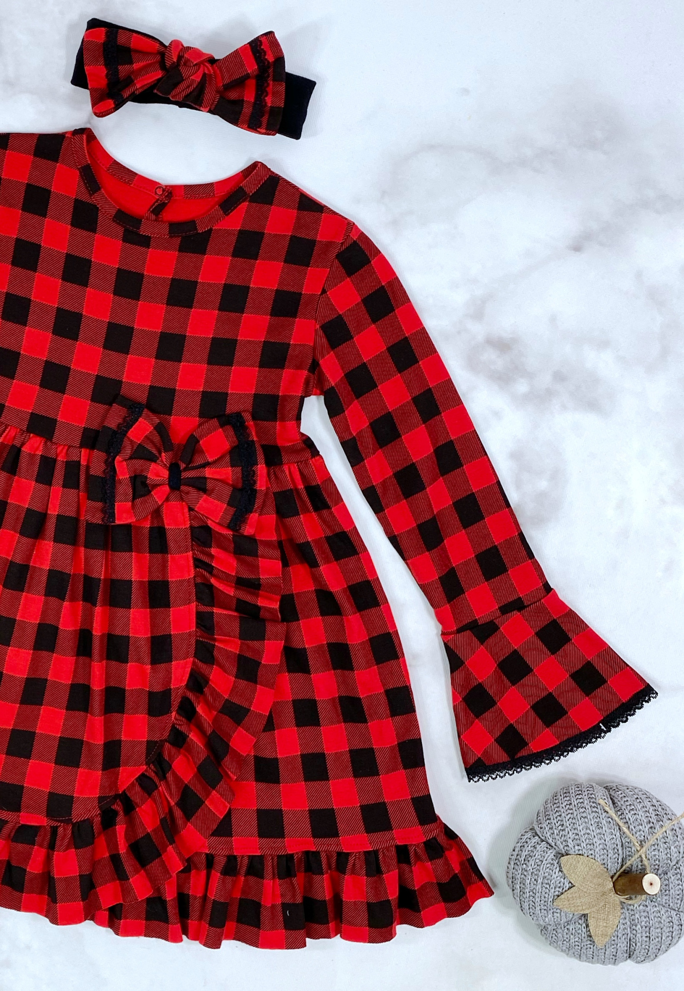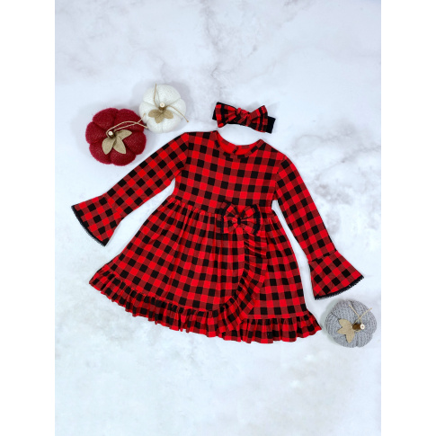 • dół sukienki zakończony falbanką, układa się na zakładkę