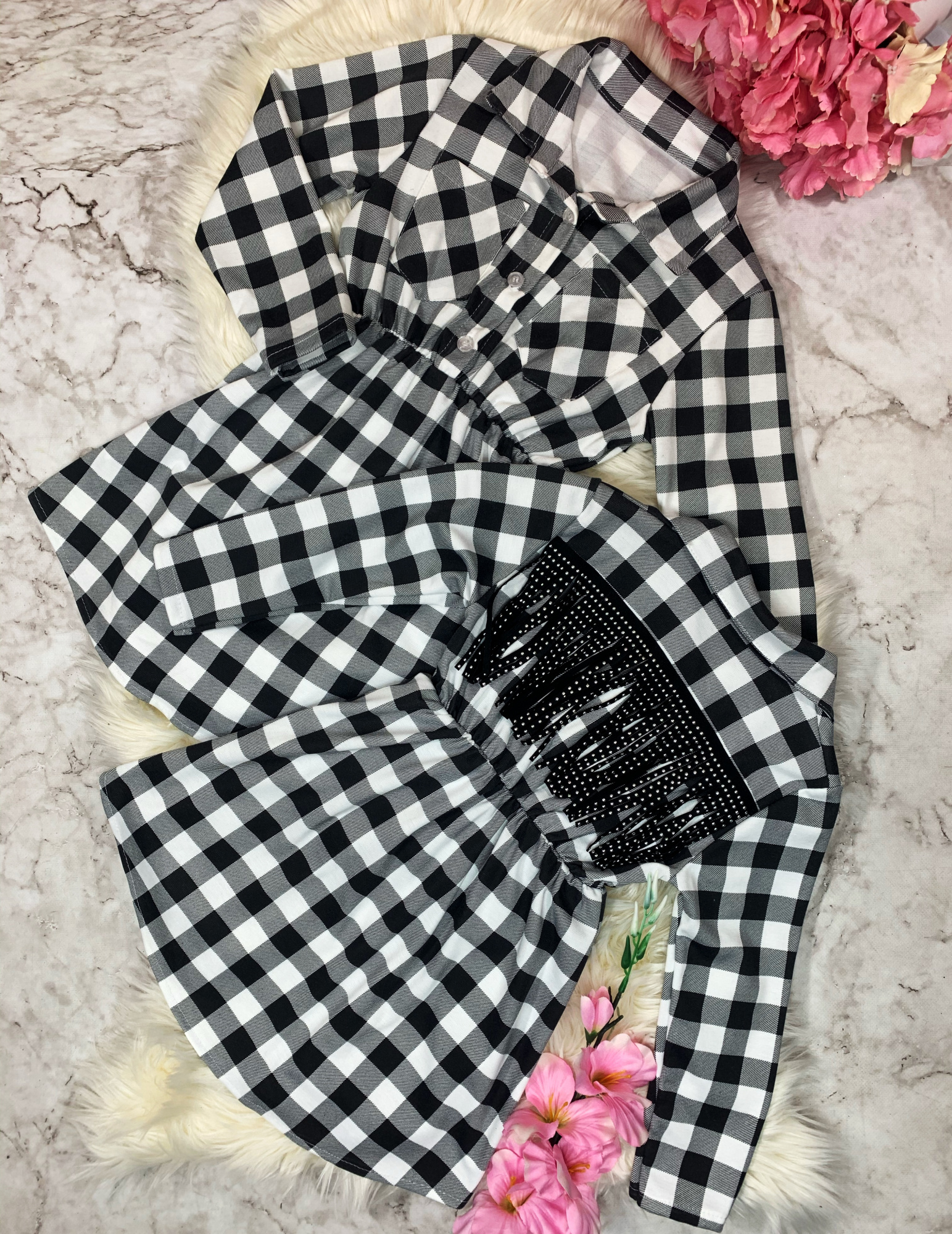 • z tyłu frędzelki a'la zamsz z dżetami w rockowym stylu