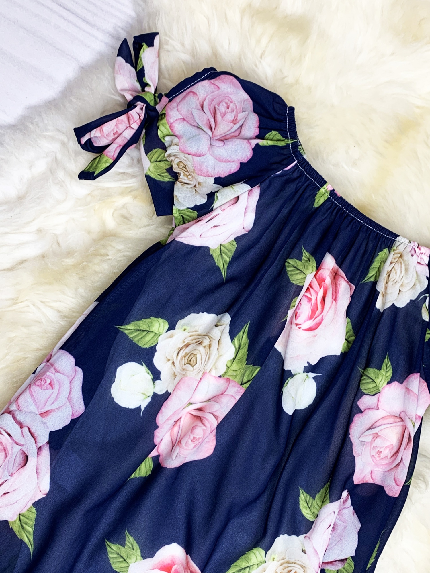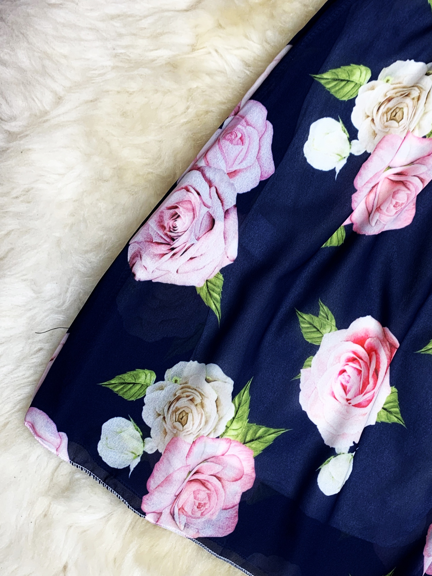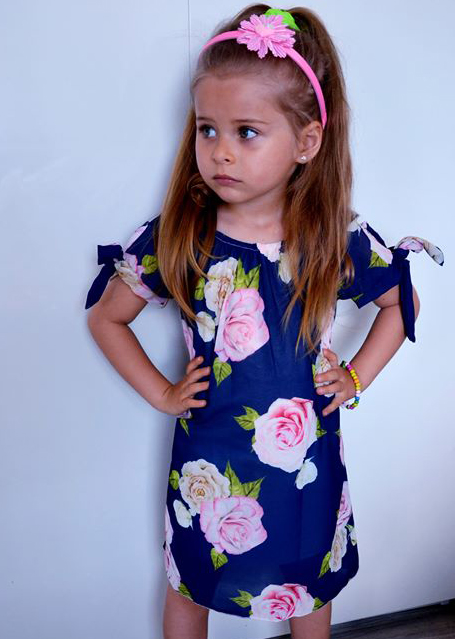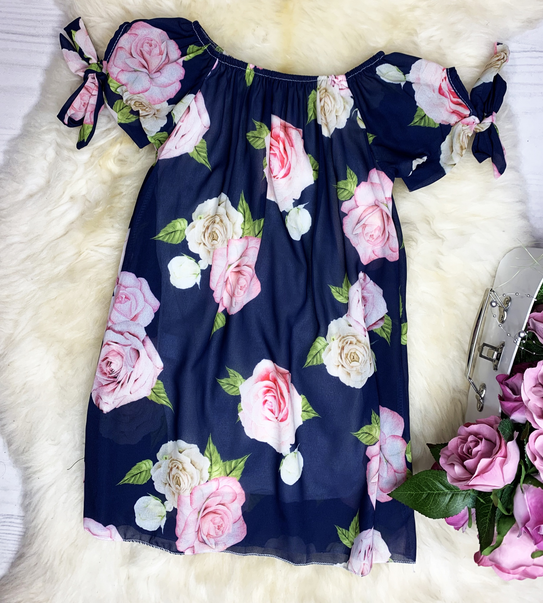 • model w kolorze granatowym z różami