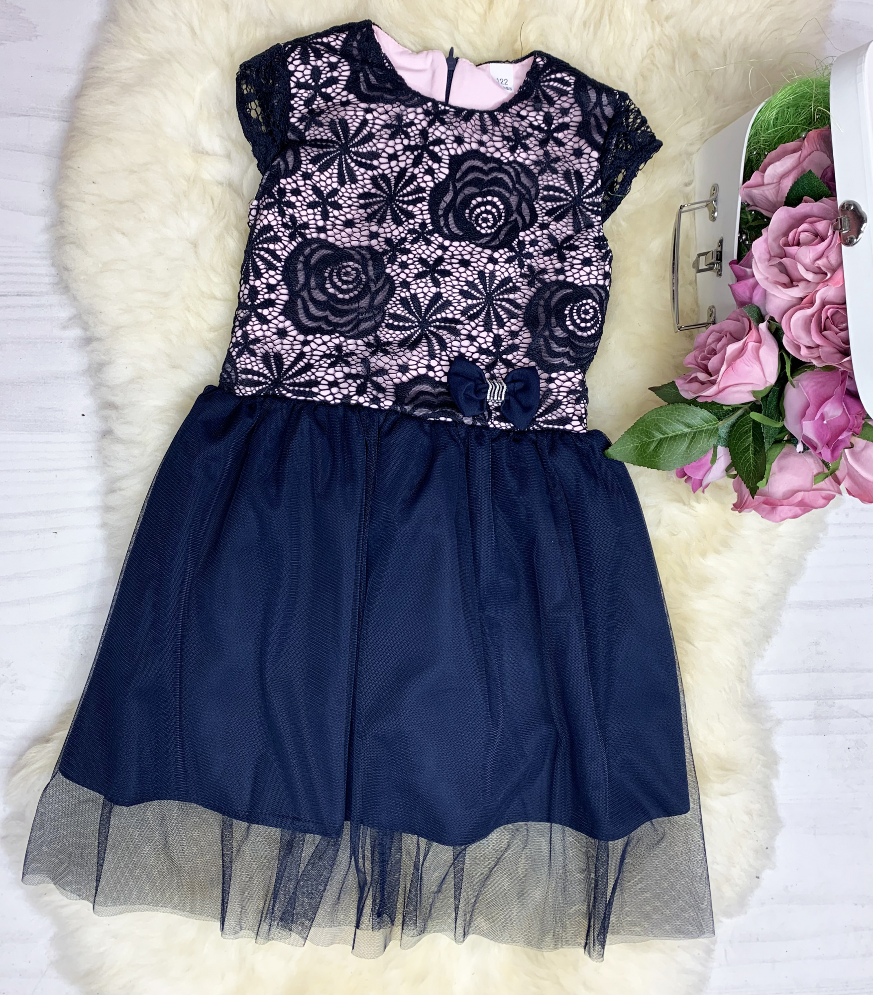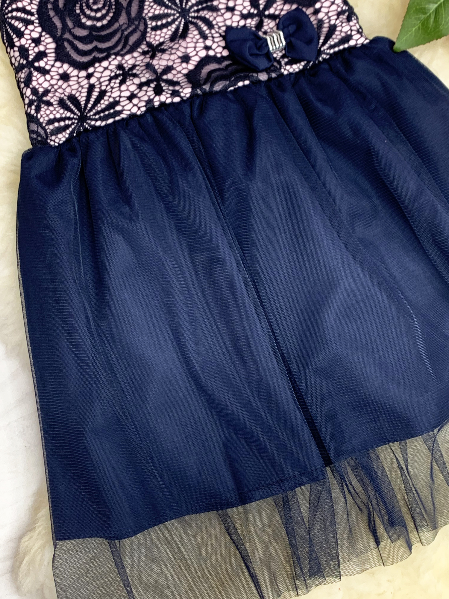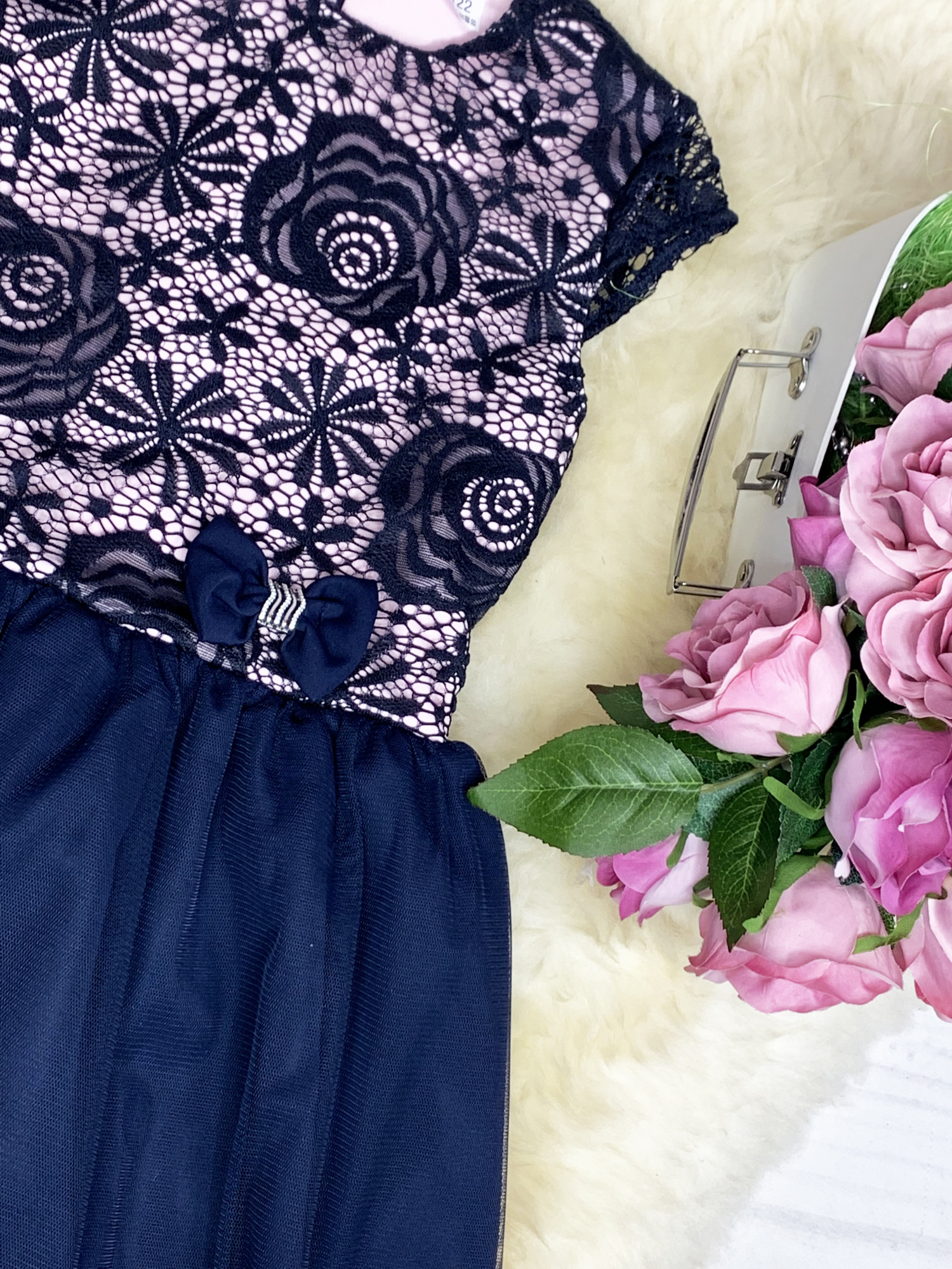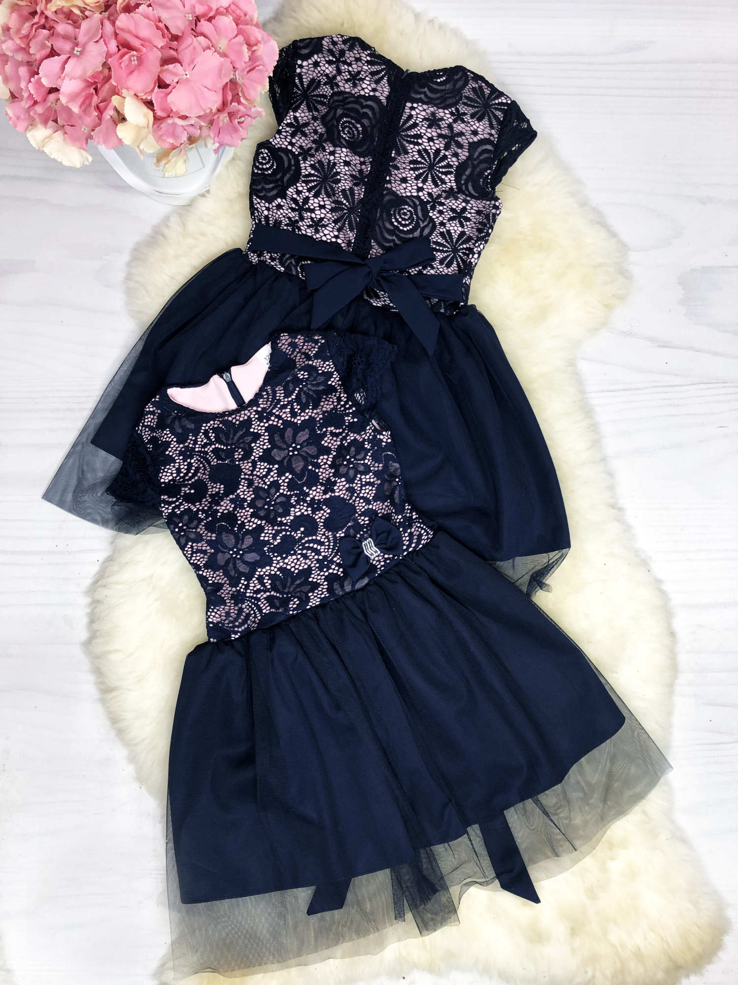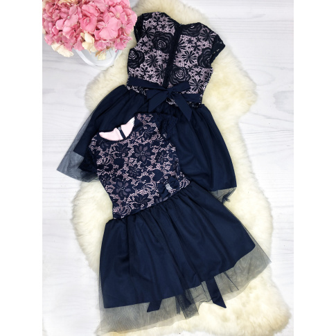 - model wykonany z miękkiej koronki w kolorze granatowym