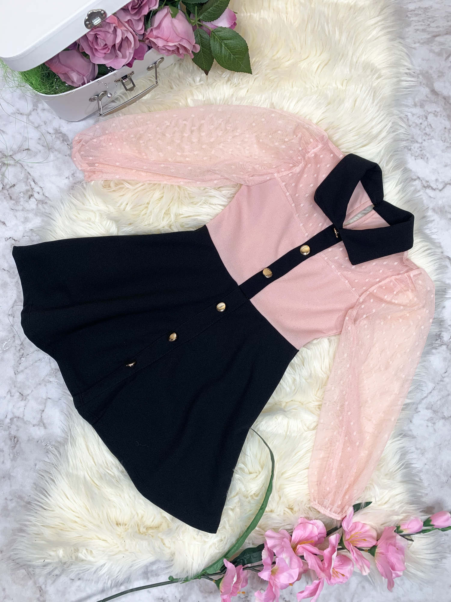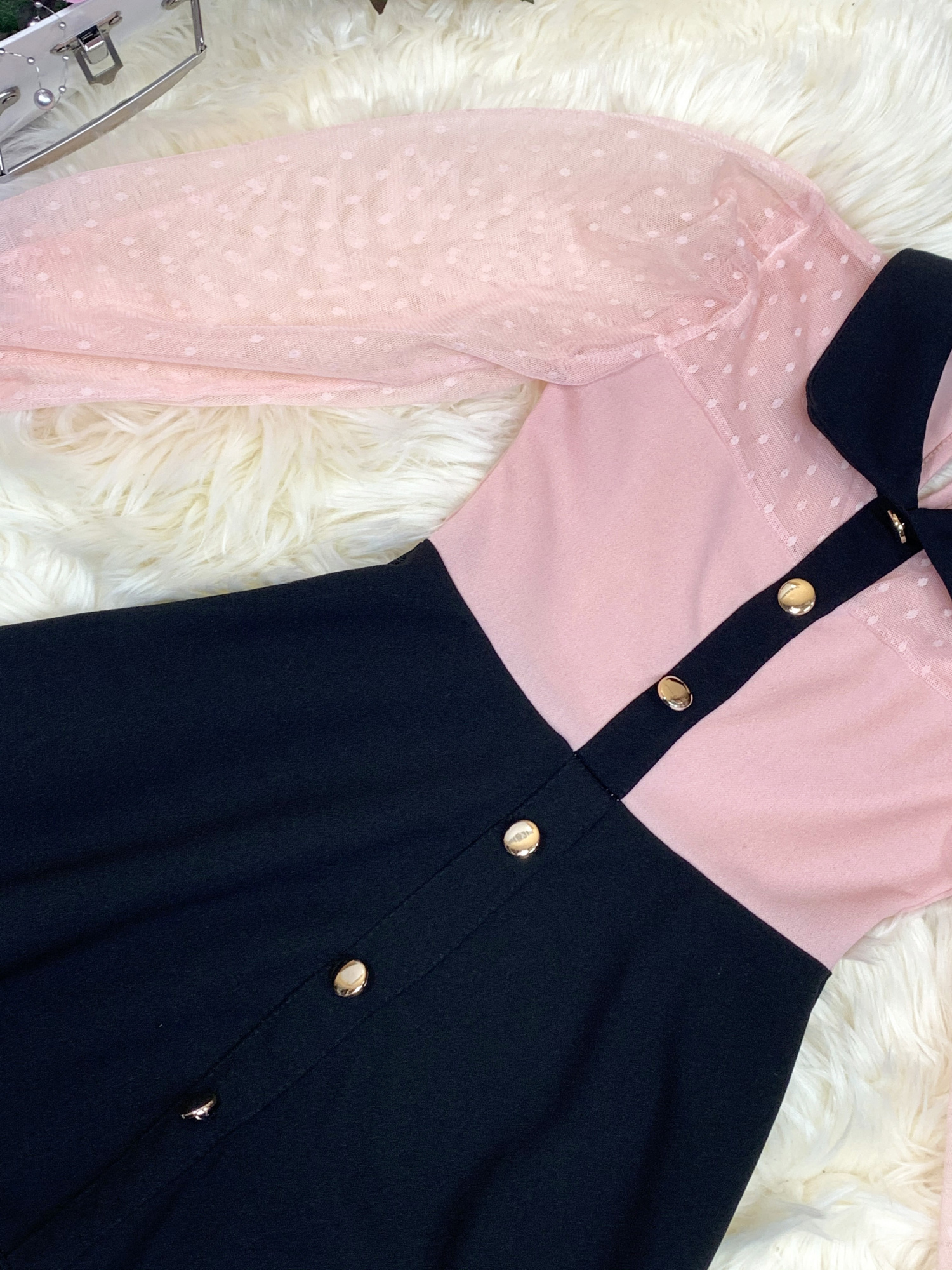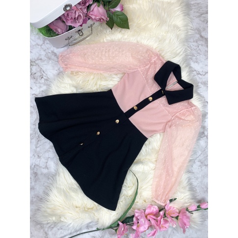 • model z kołnierzykiem ozdobiony złotymi guziczkami