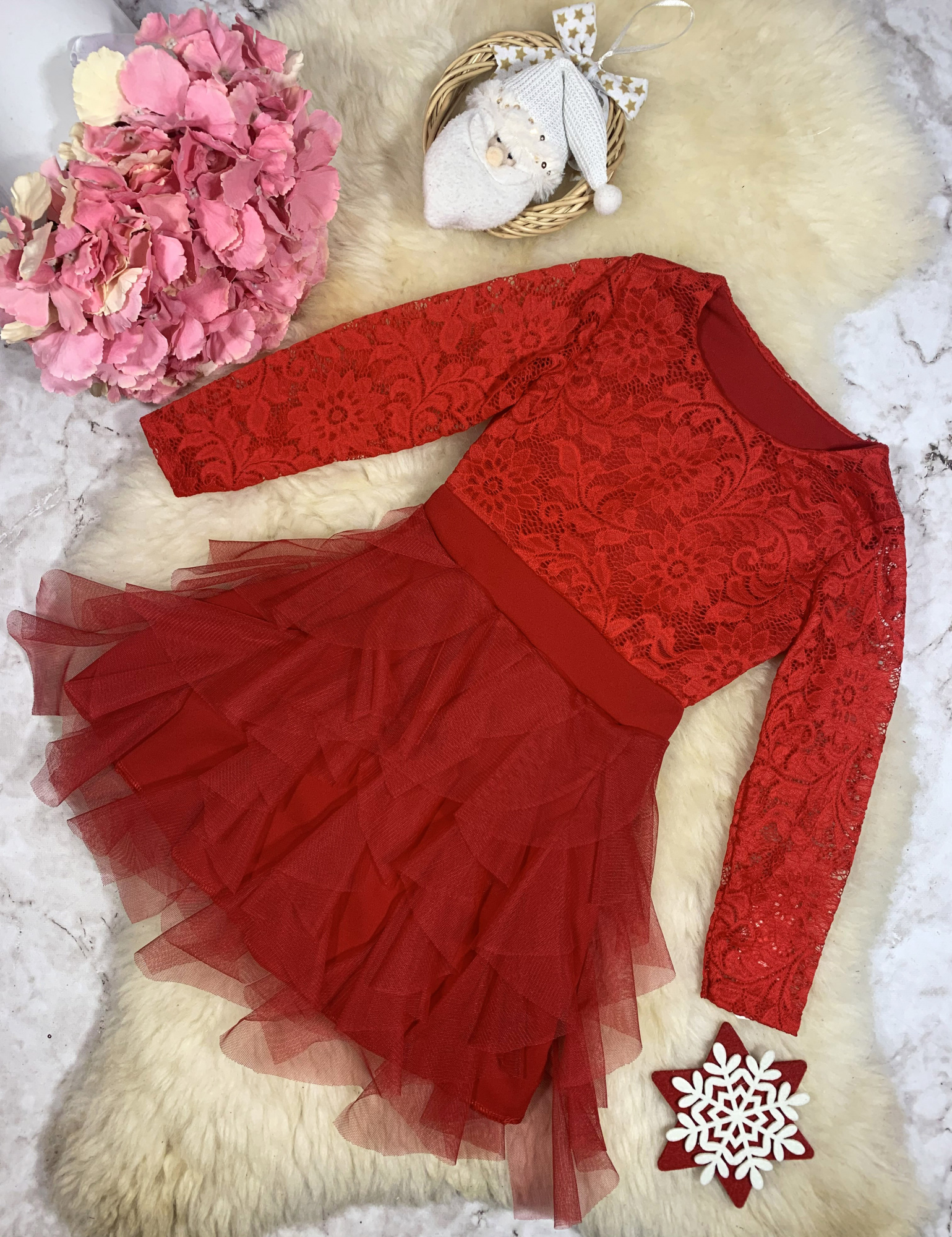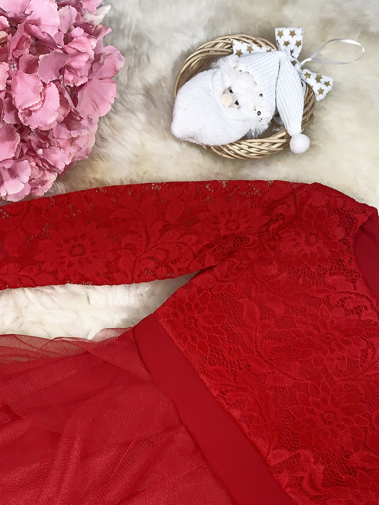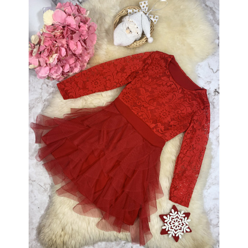 - sukienka u góry z koronką dół wykończony warstwowo tiulem