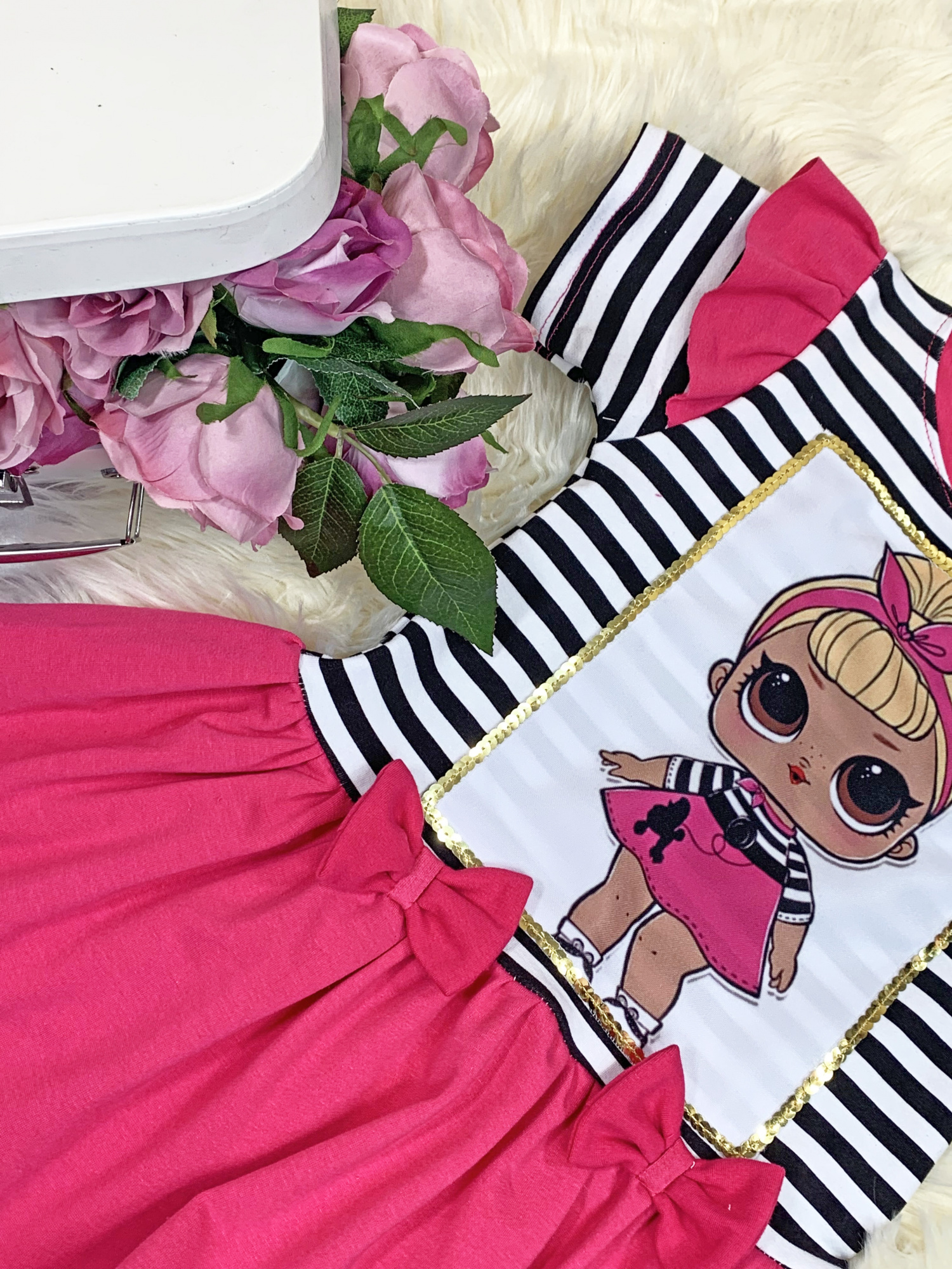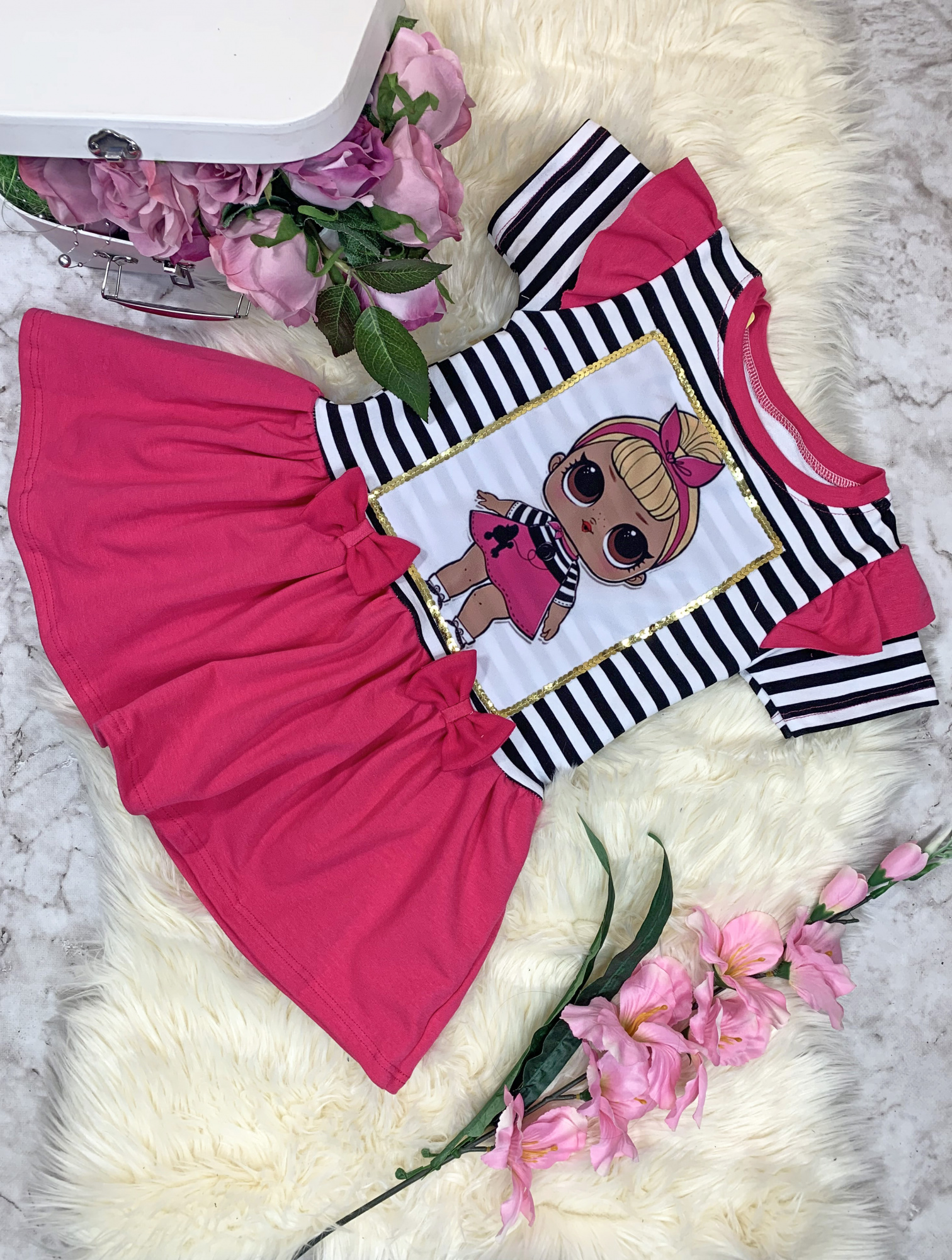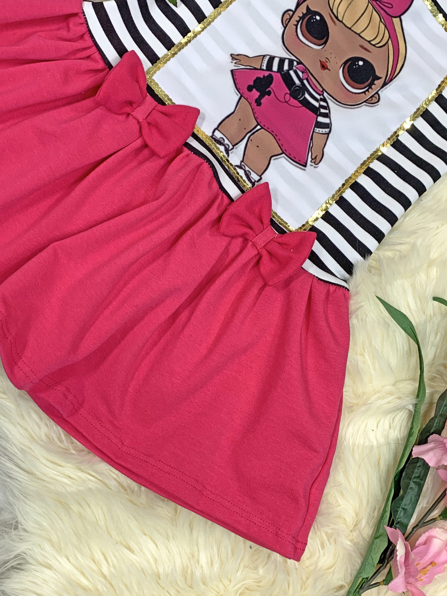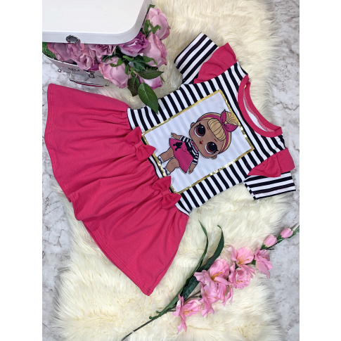 Sukienka LOL Pasiak Krótki Rękaw - Różowy