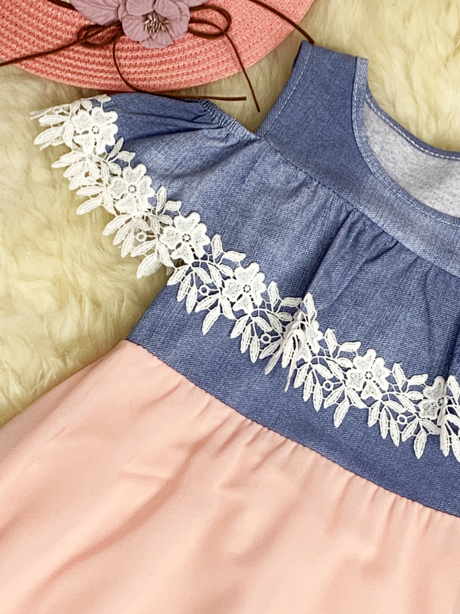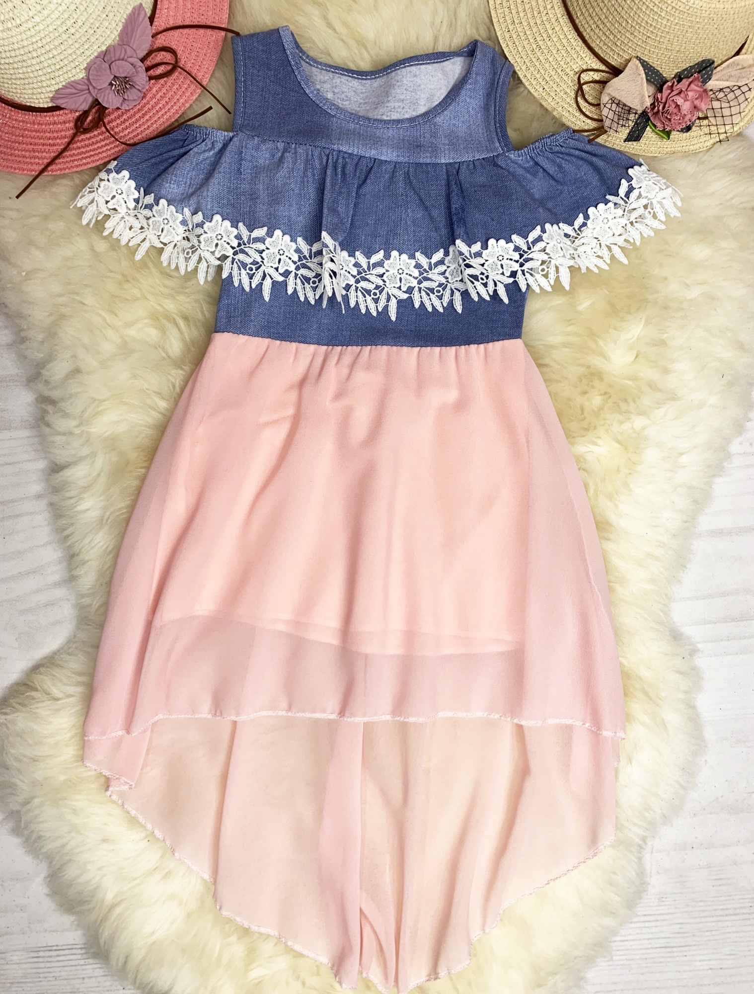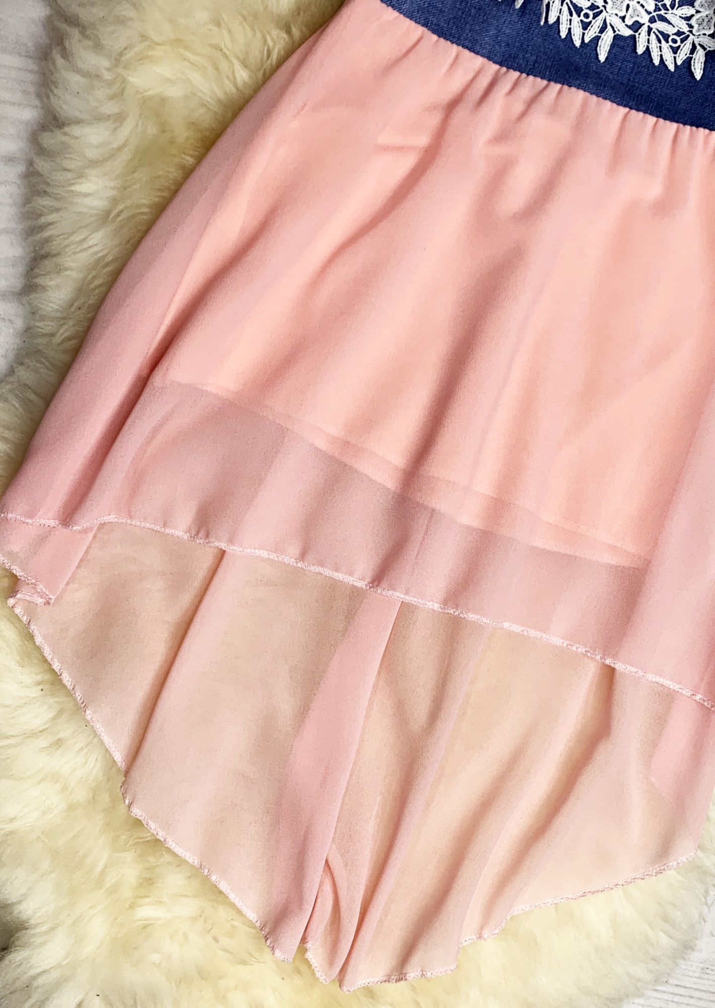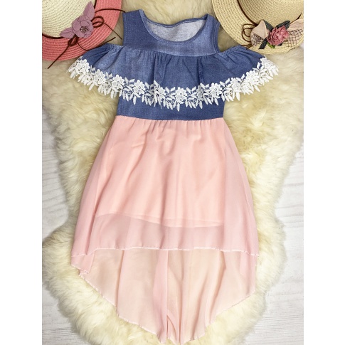 - góra wykonana z materiału a'la jeans ozdobiona koronką