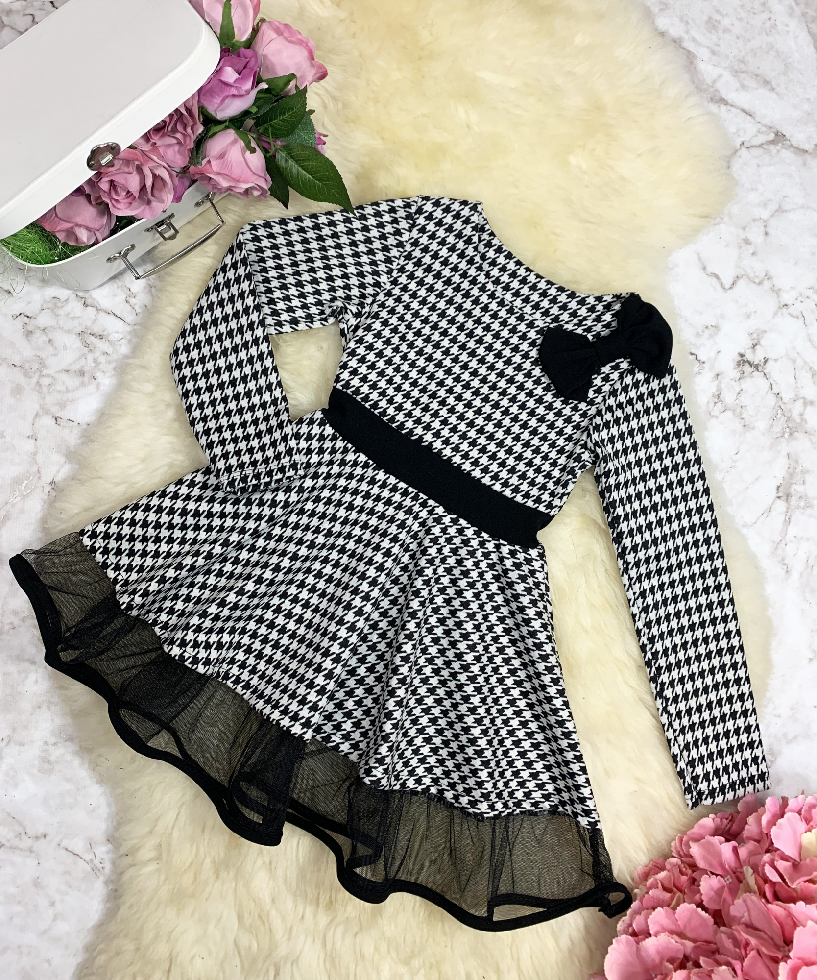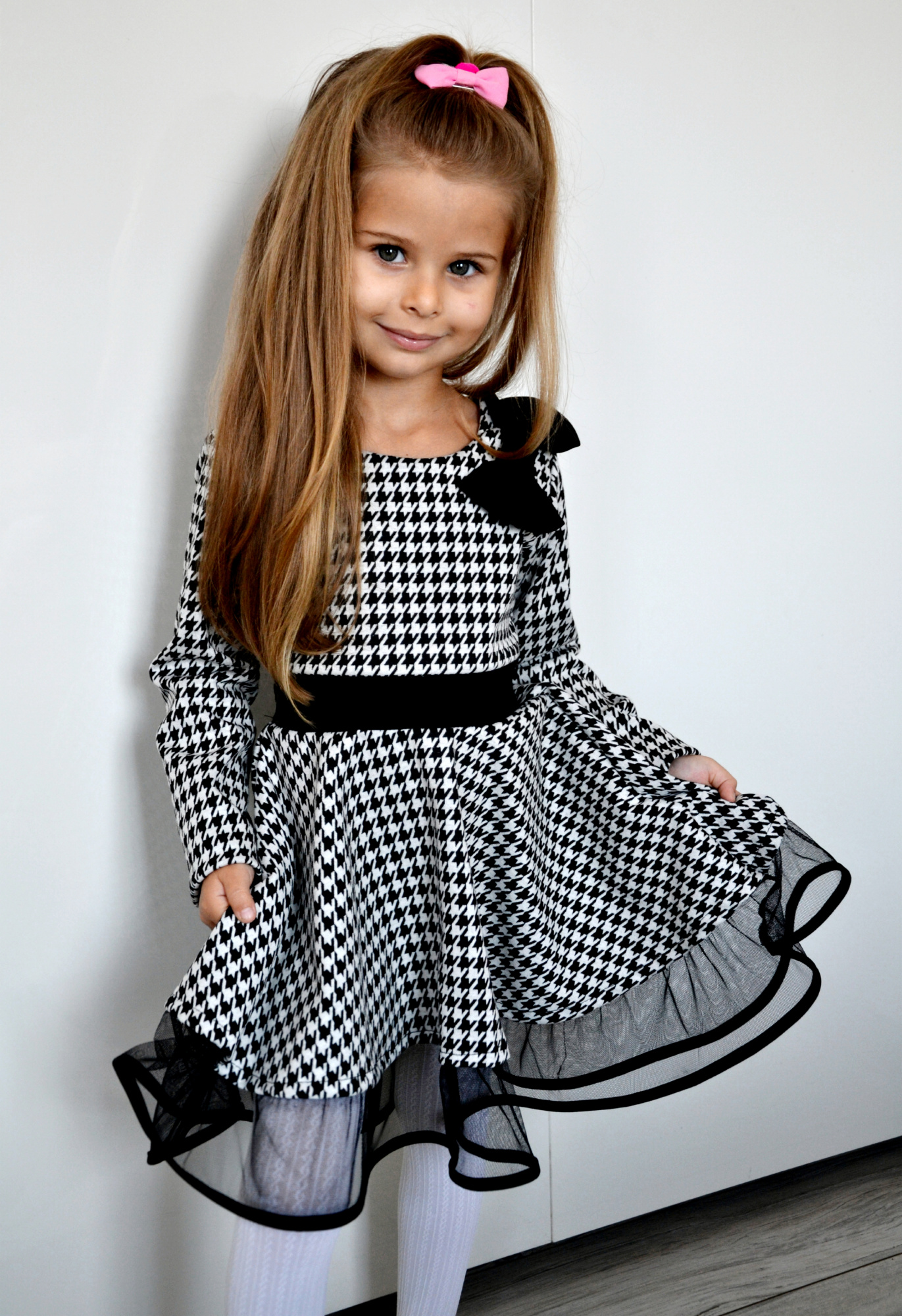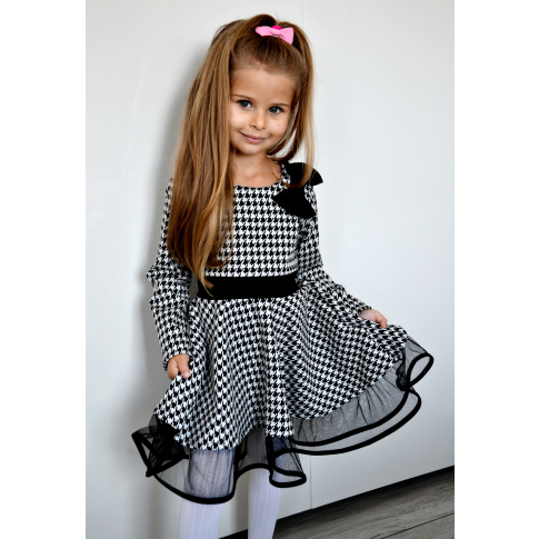 Sukienka Pepitka Elegance z Kokardką i Tiulem