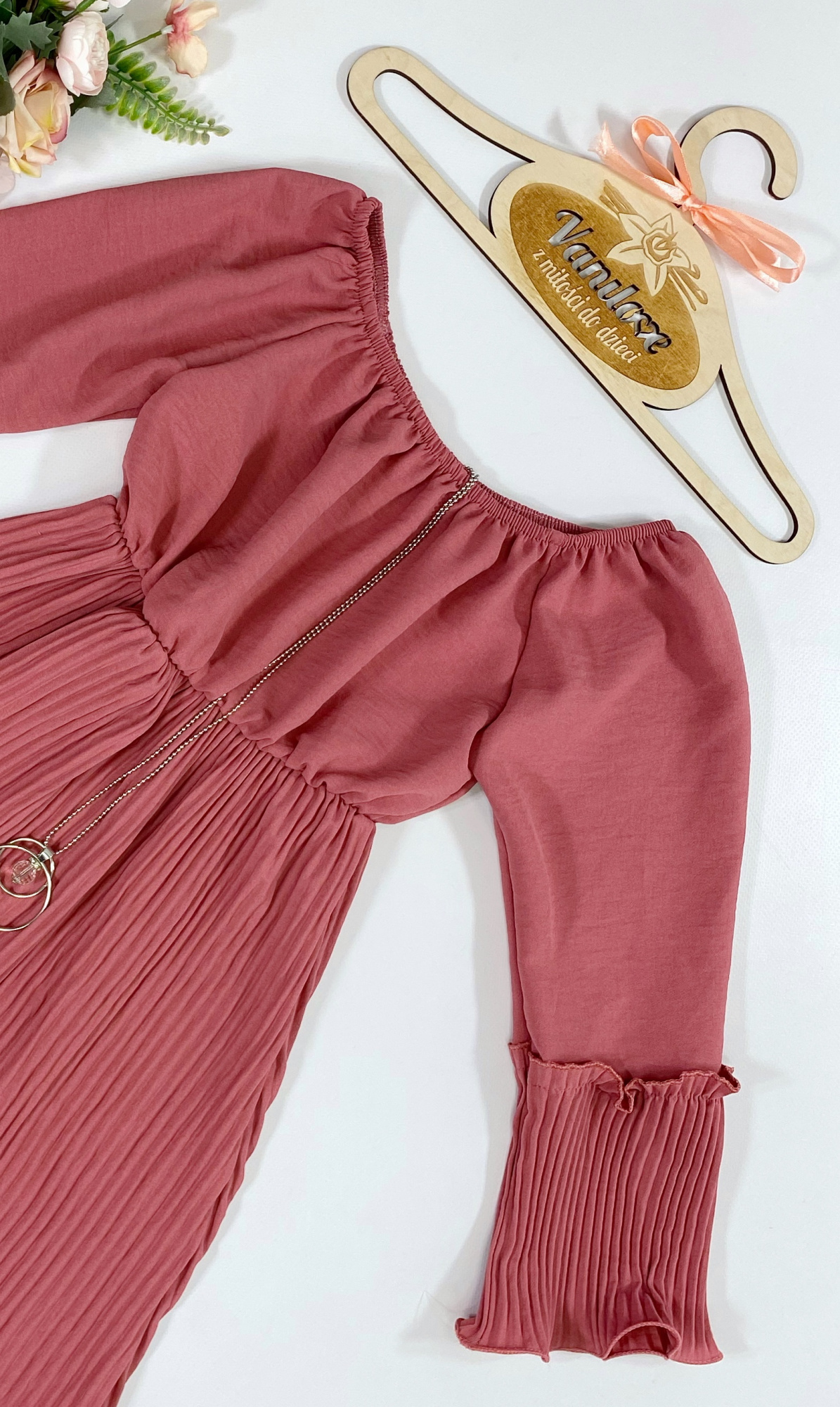 - rękawy z gumeczką w kształcie dzwonków, plisowane