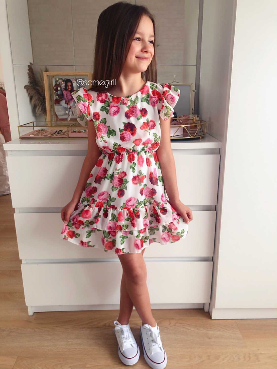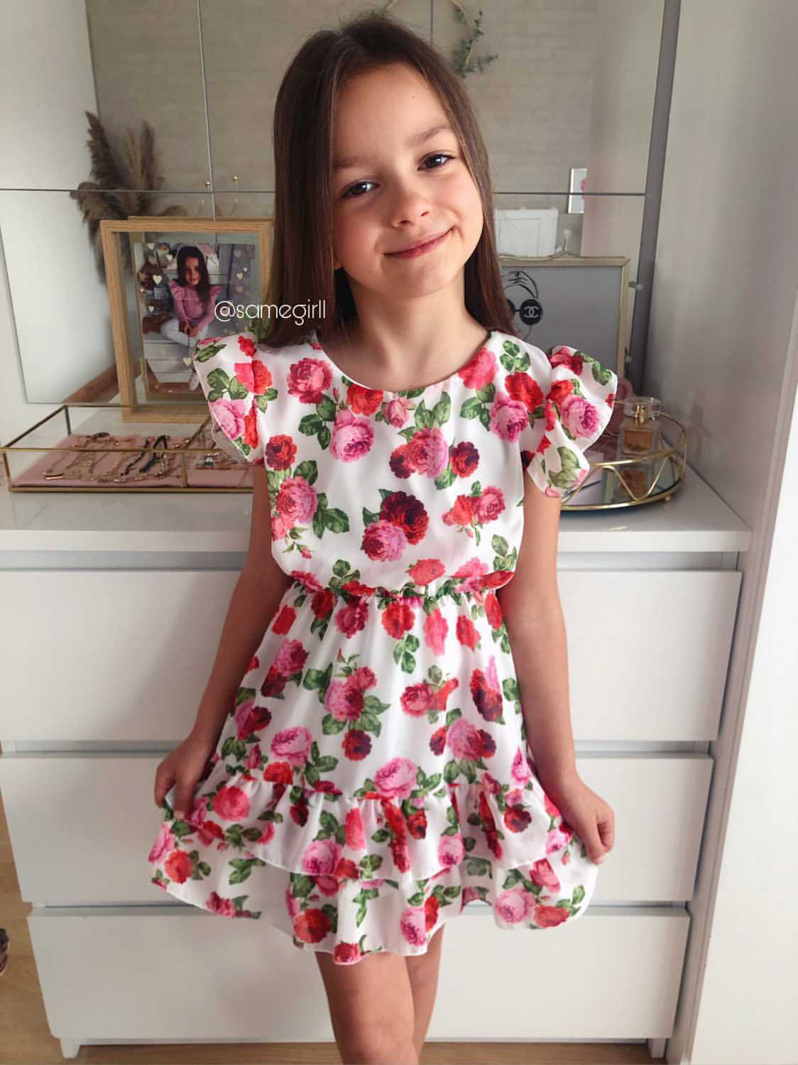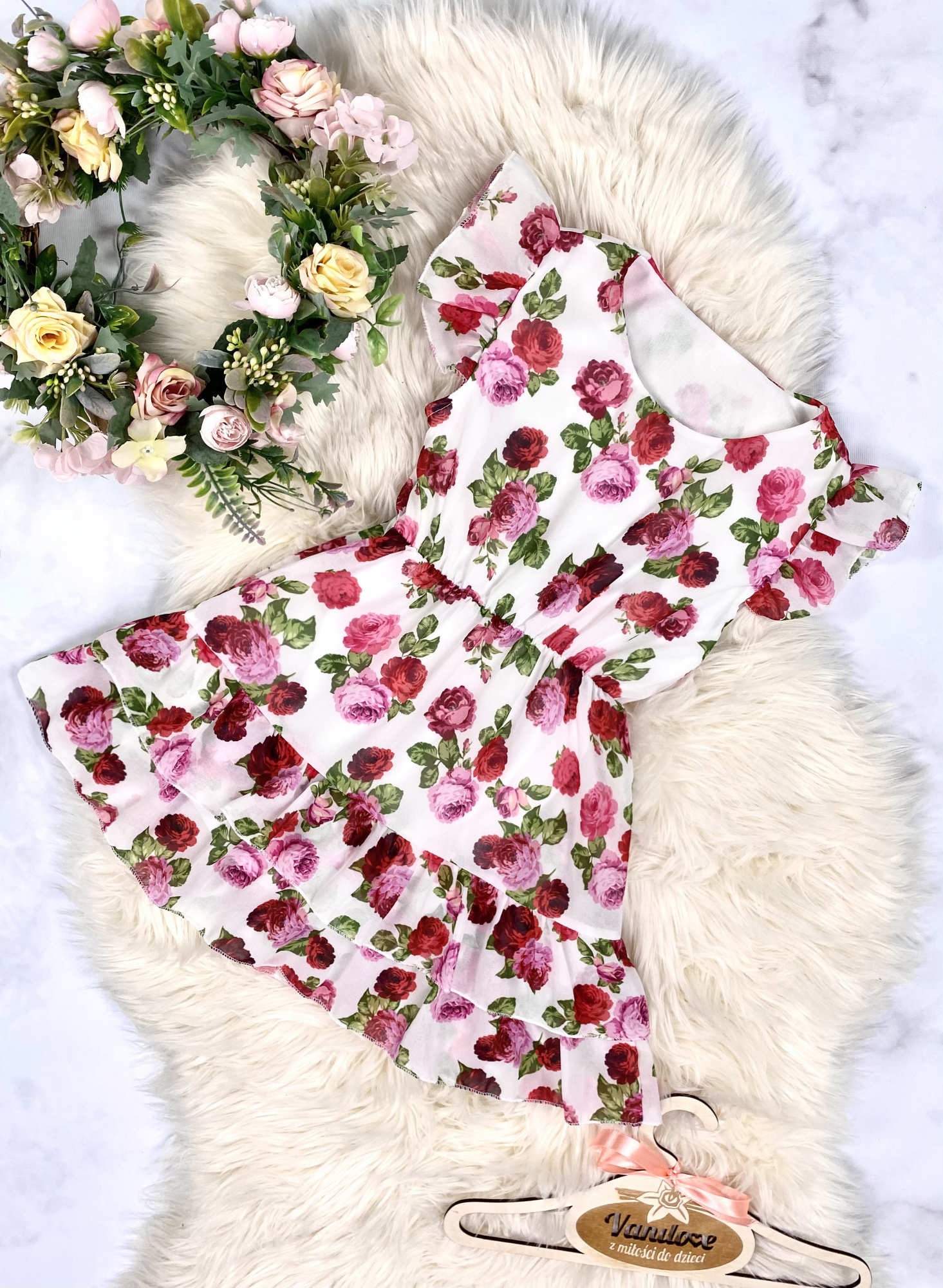 • sukienka w pasie posiada elastyczną gumkę, co daje piękny efekt taliowania
