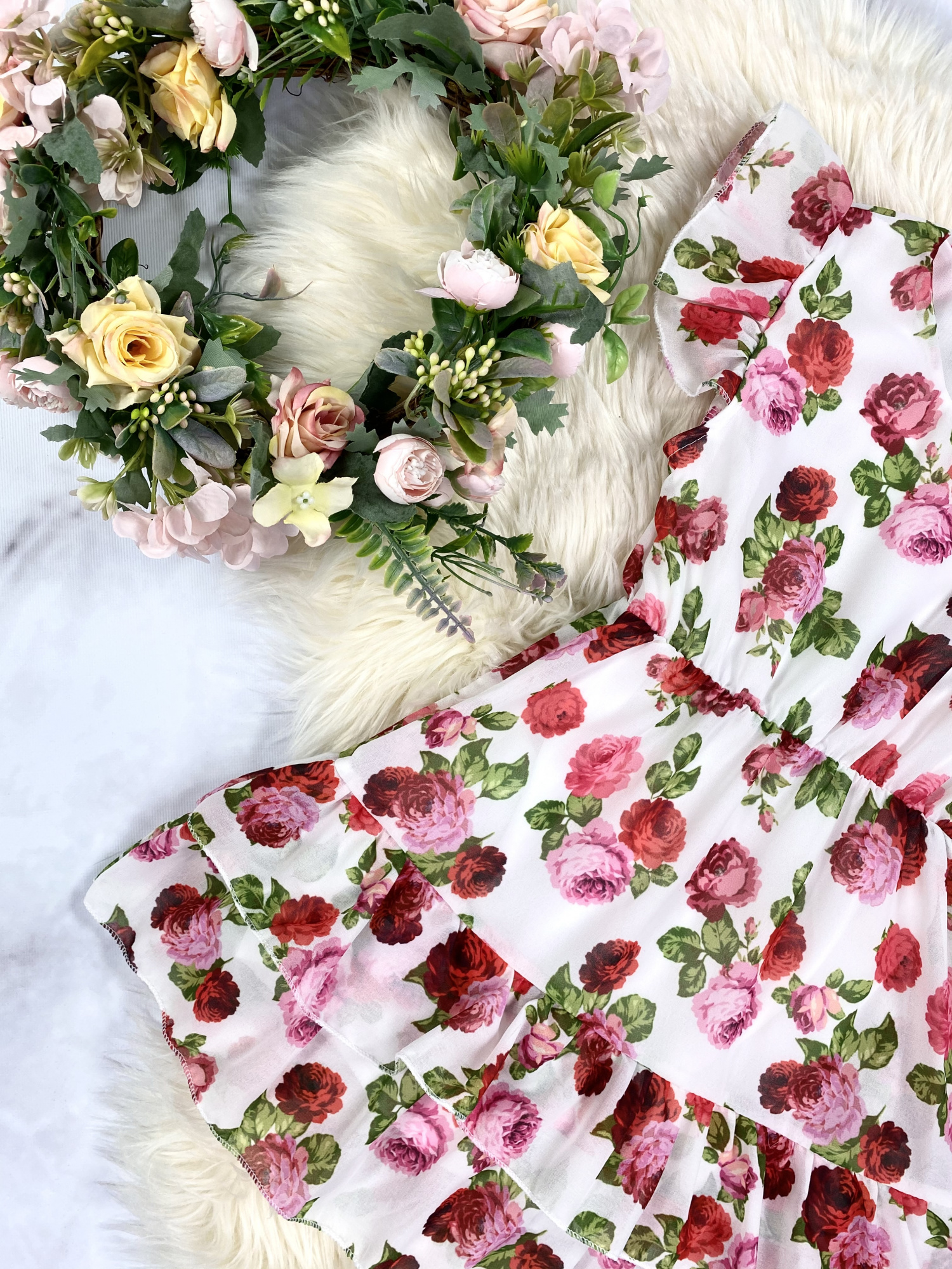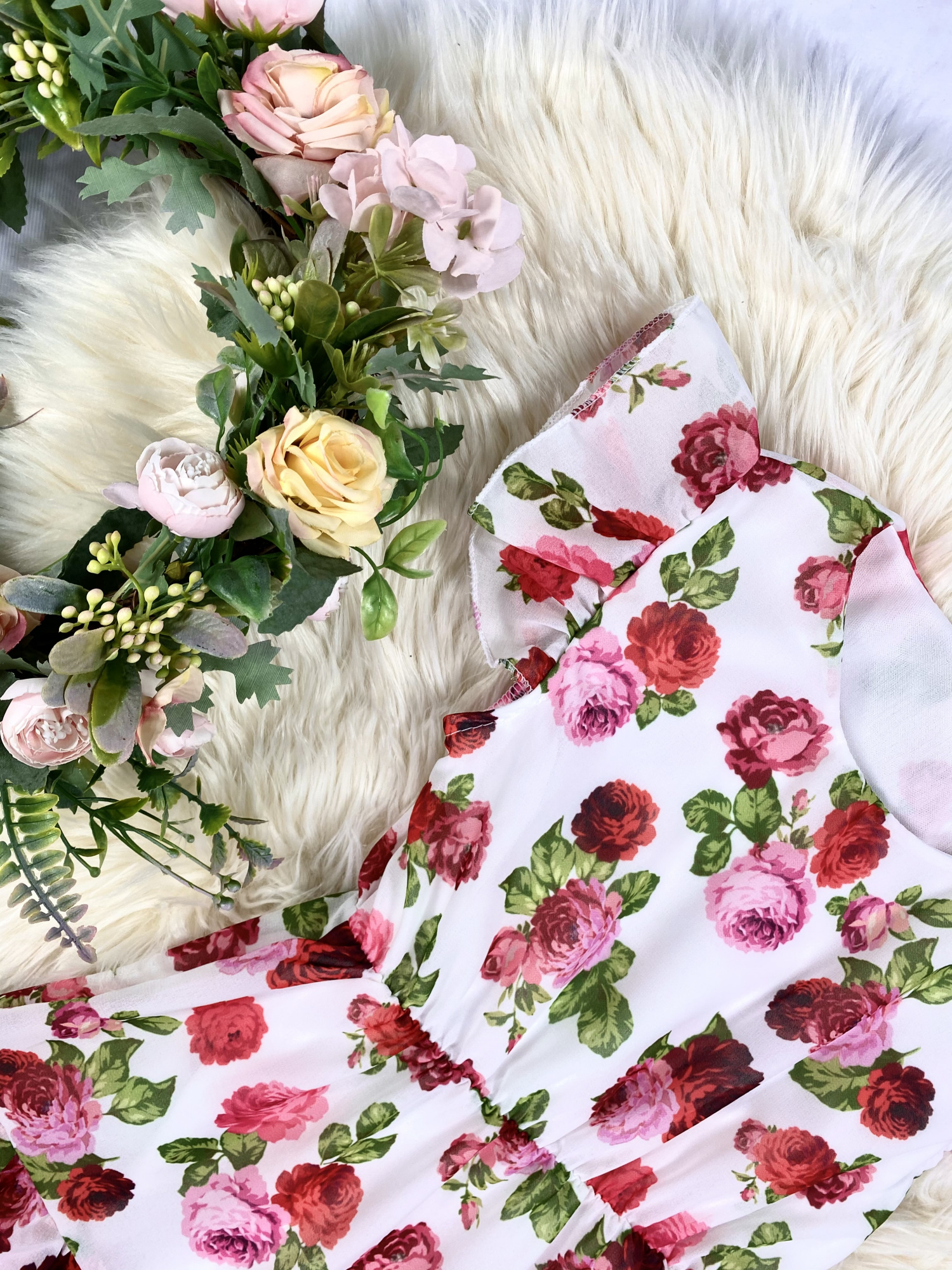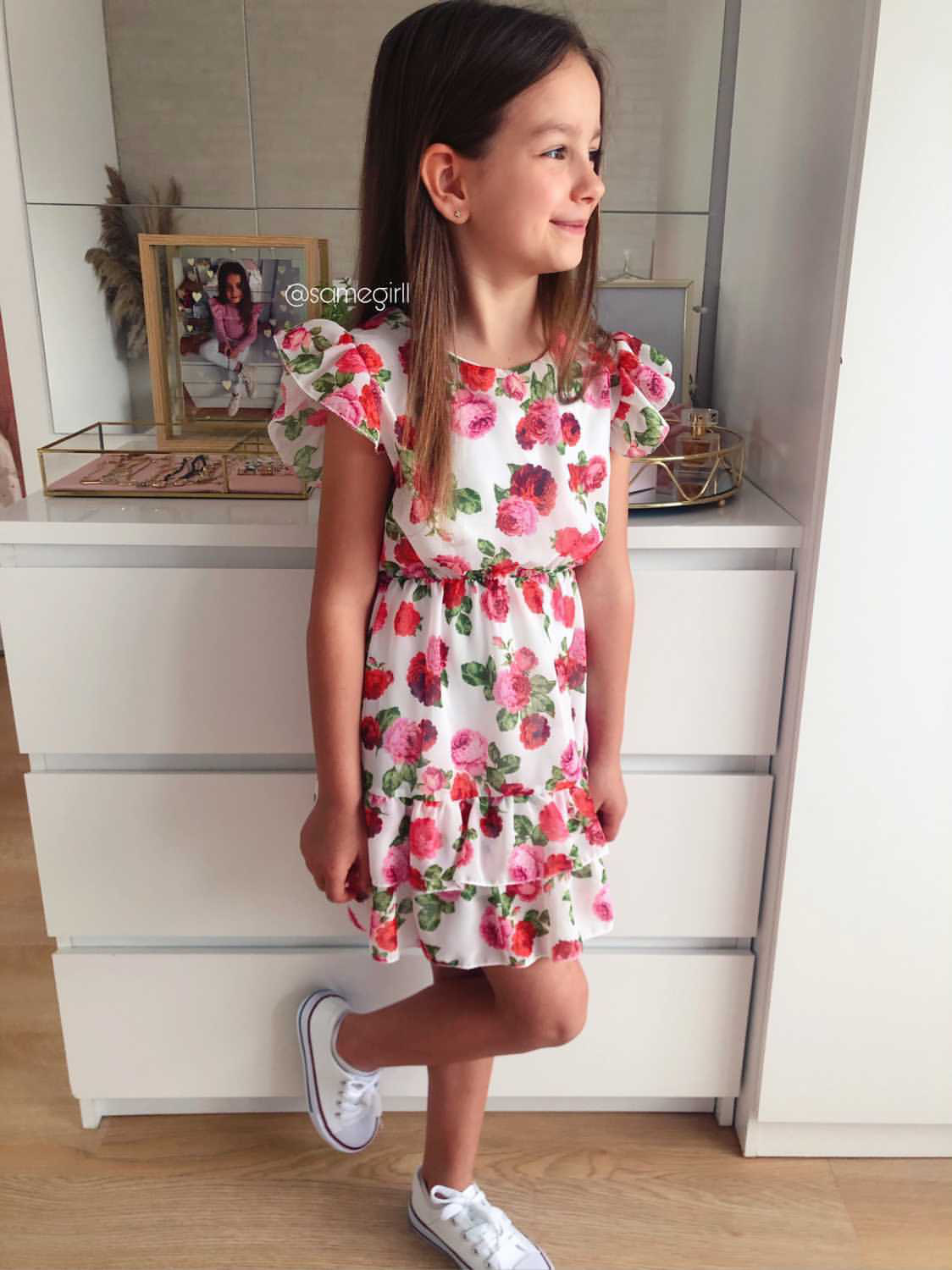 • sukienka w pasie posiada elastyczną gumkę, co daje piękny efekt taliowania
