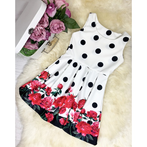 Sukienka Susanne - czarne kropki + kwiaty