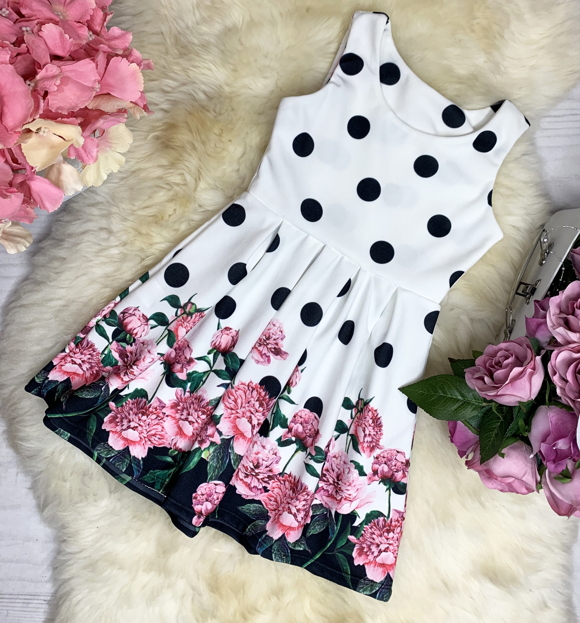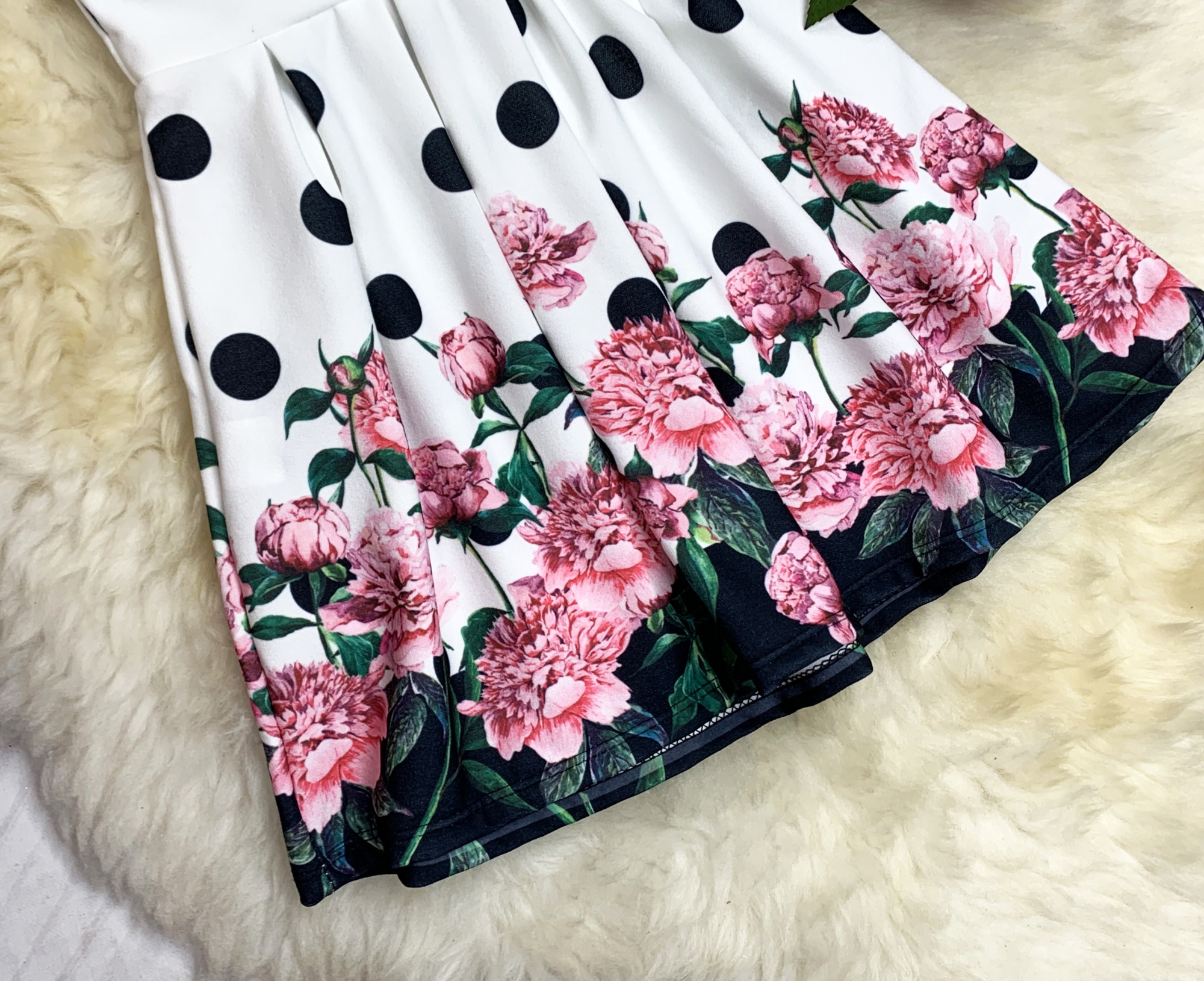 Sukienka Susanne II - czarne kropki + kwiaty PINK
