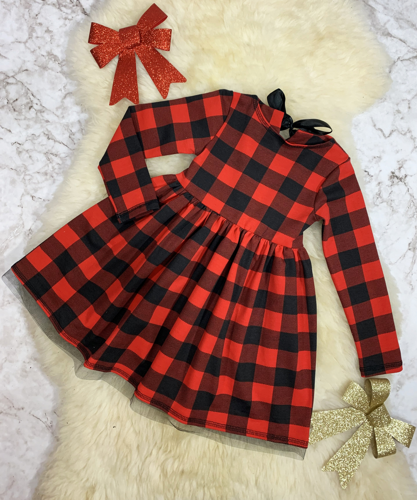 Sukienka w kratkę z kokardą - Christms Collection