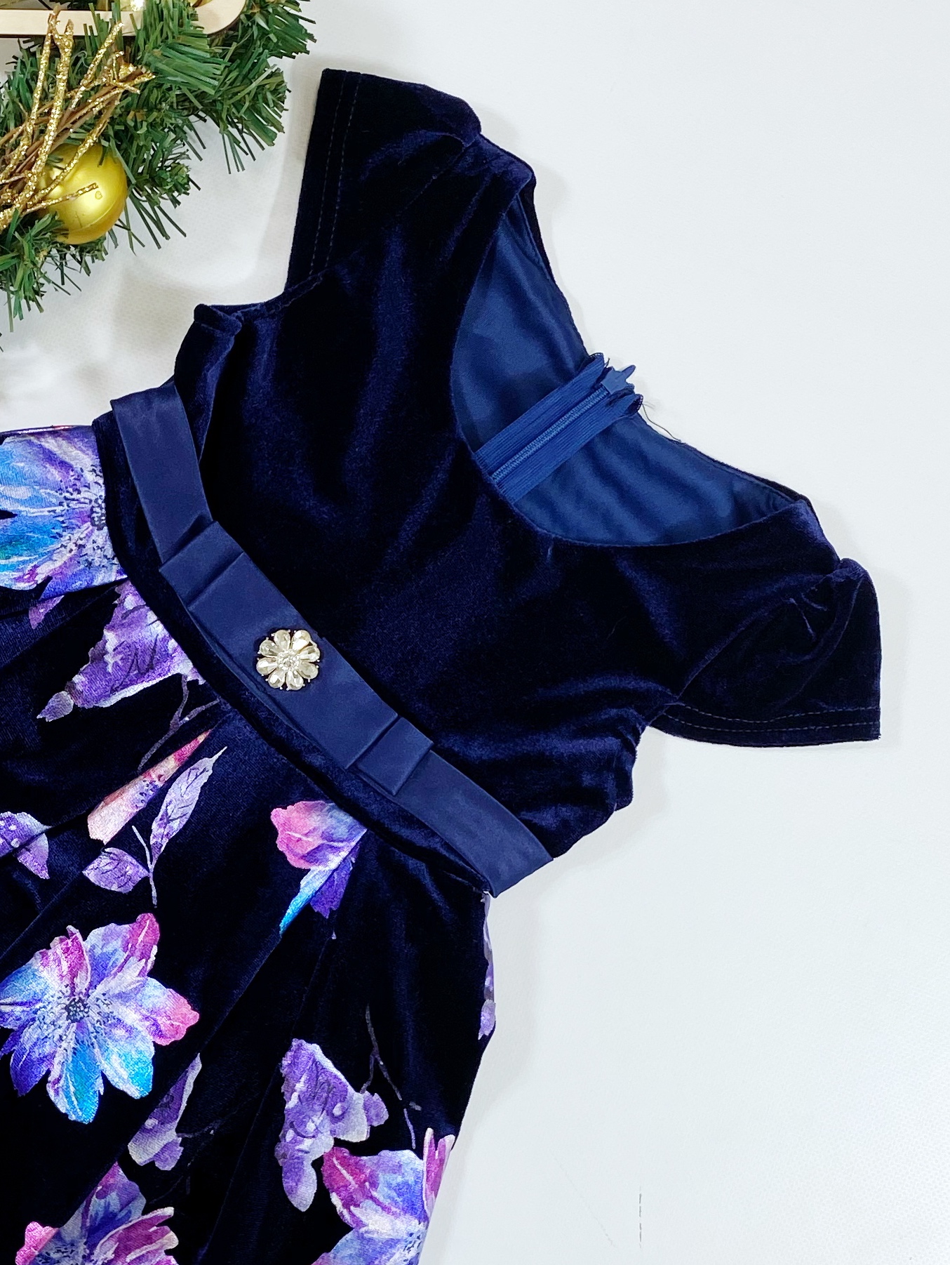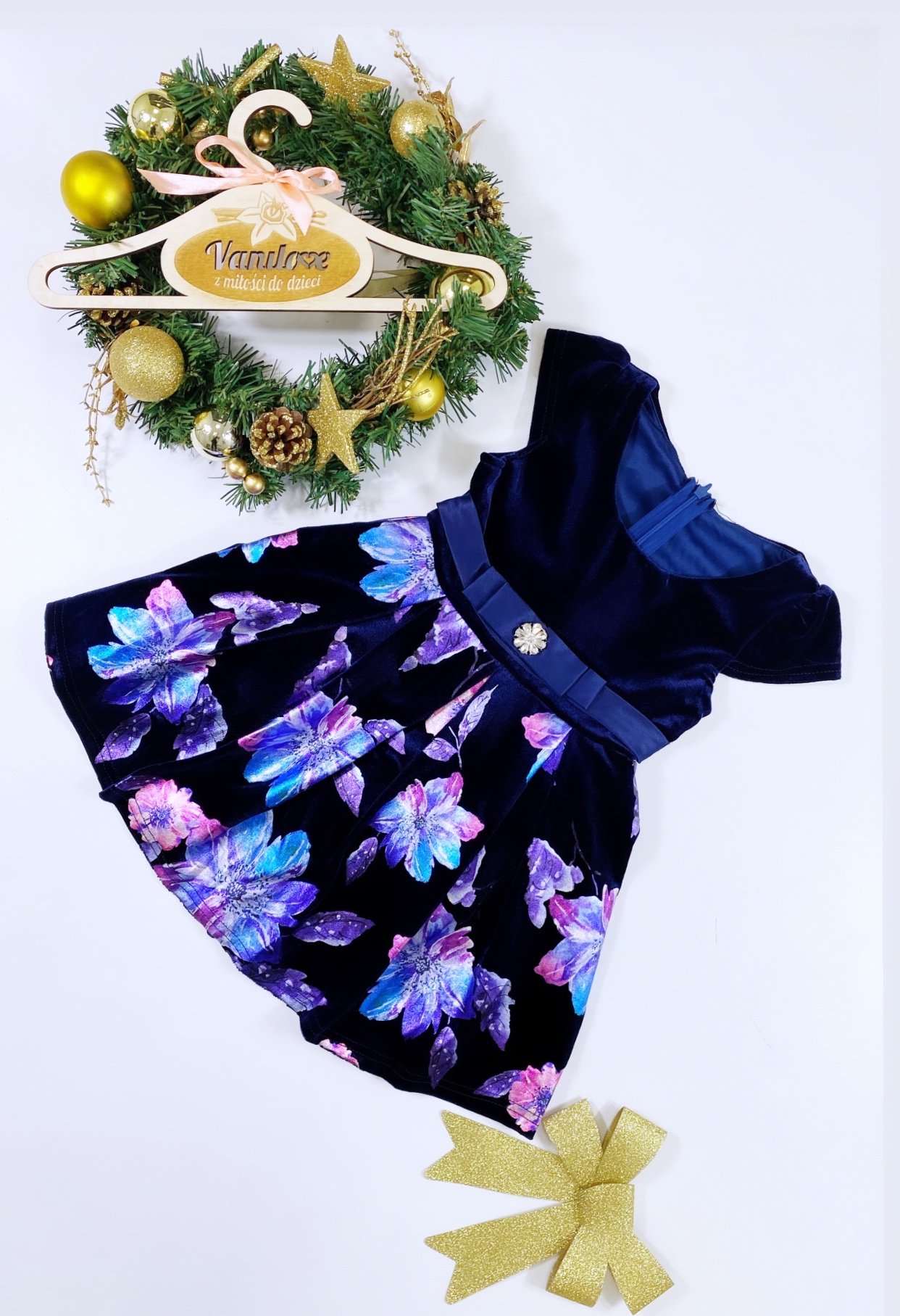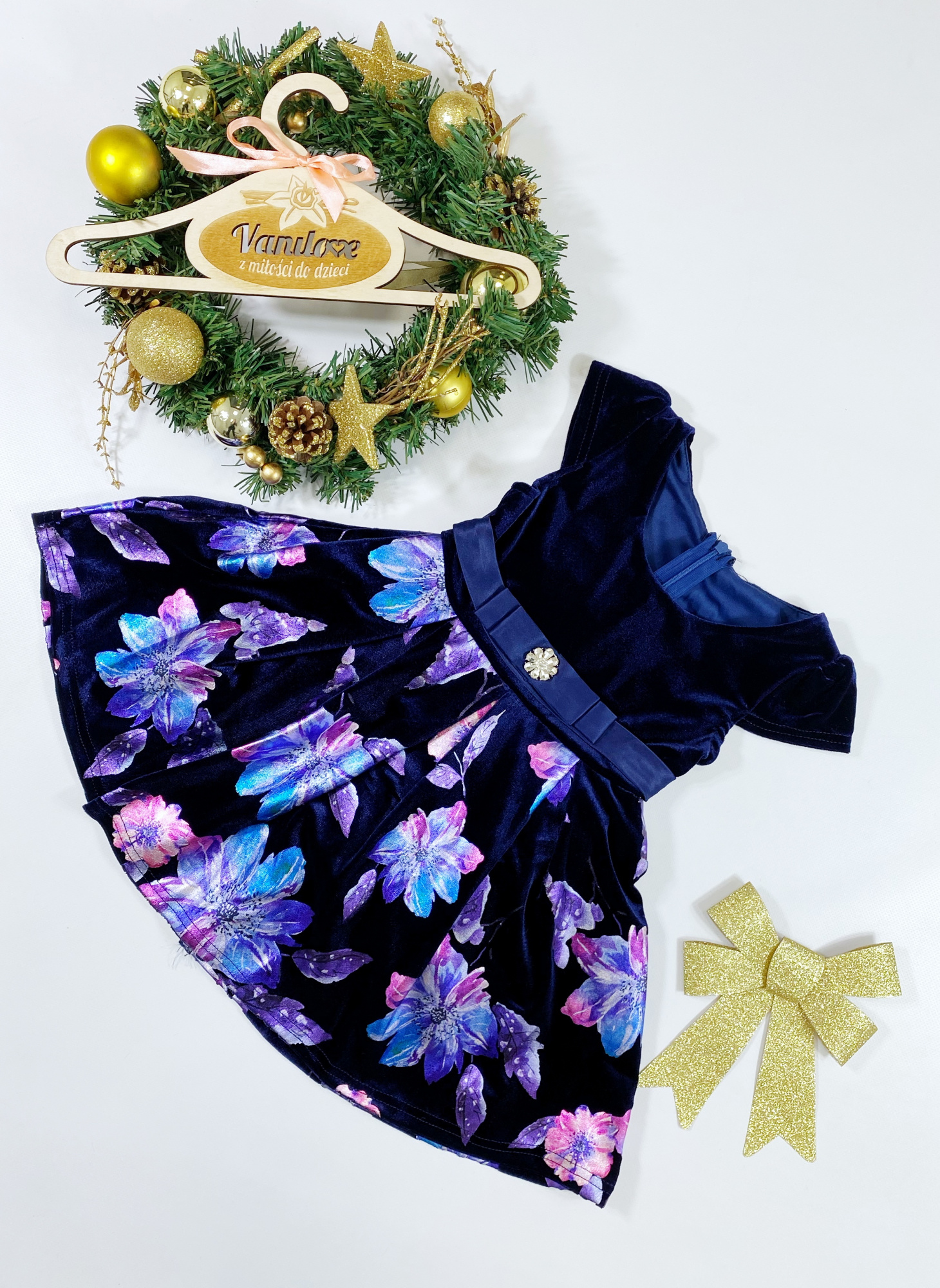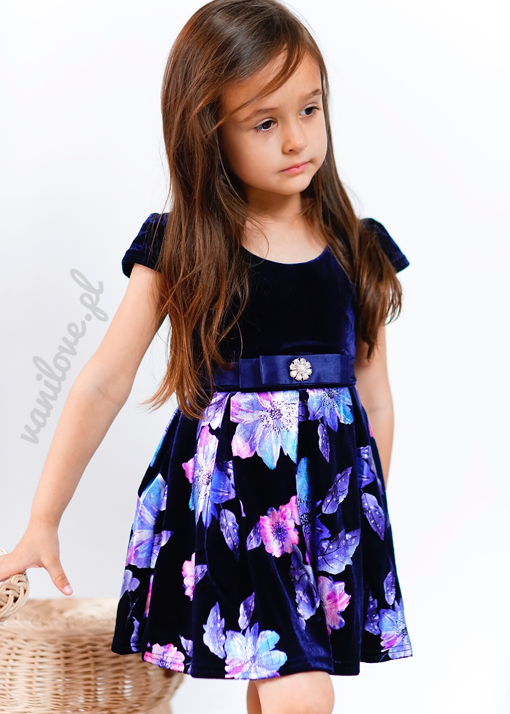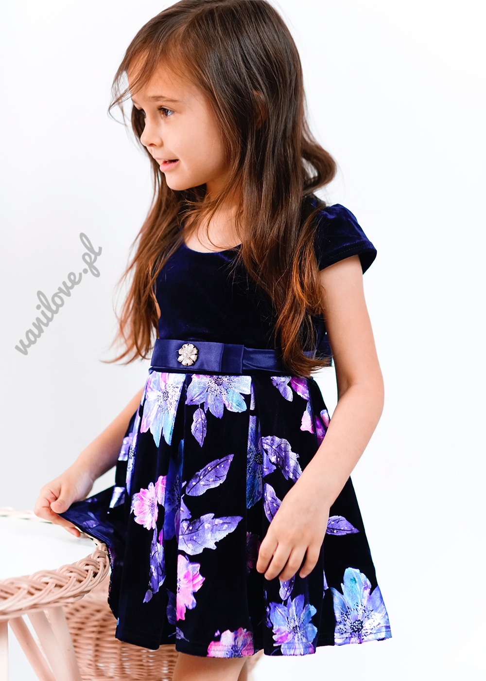 Sukienka welurowa dla dziewczynki Amanda Flower Navy Blue