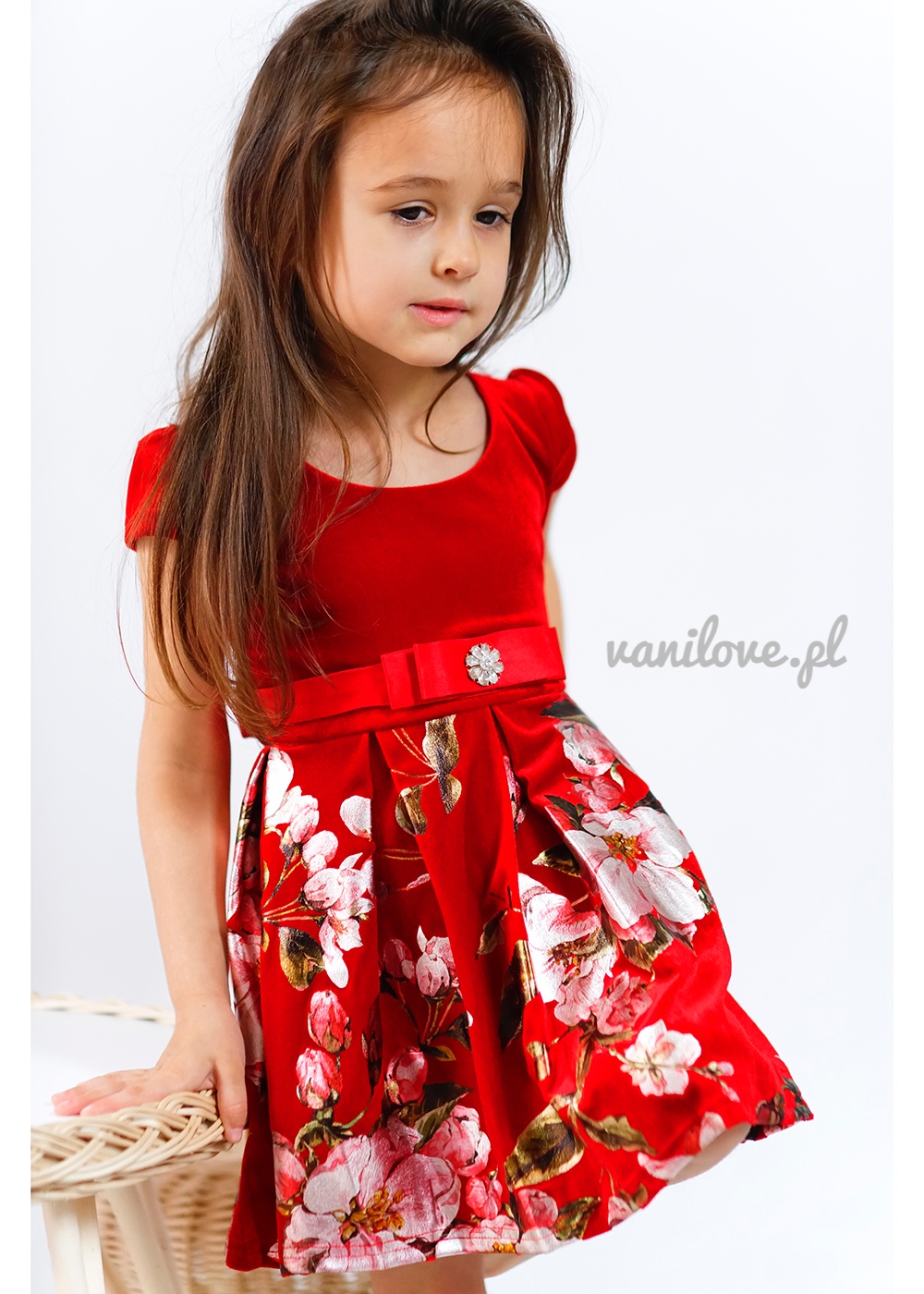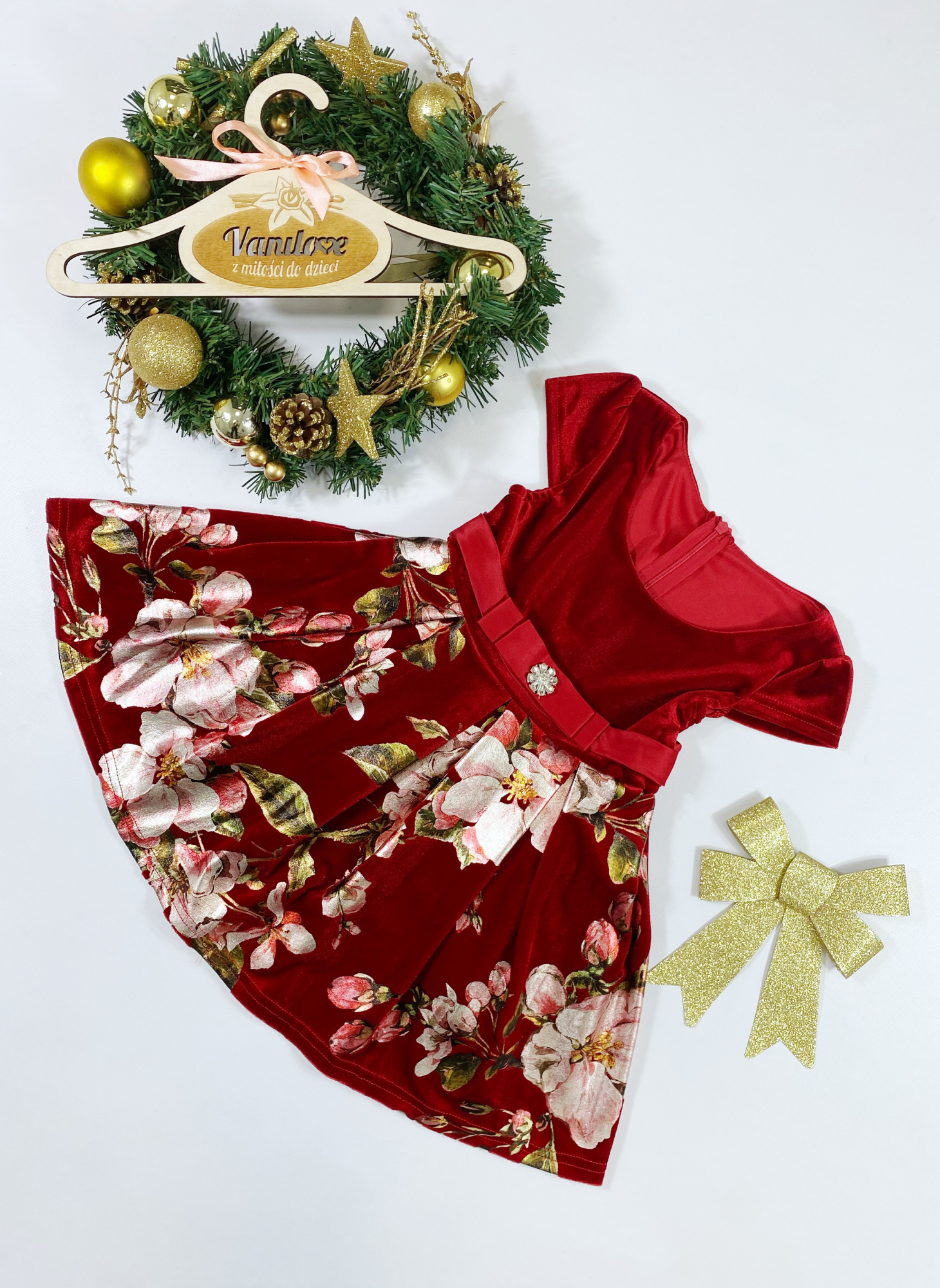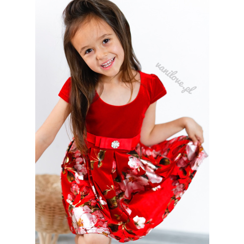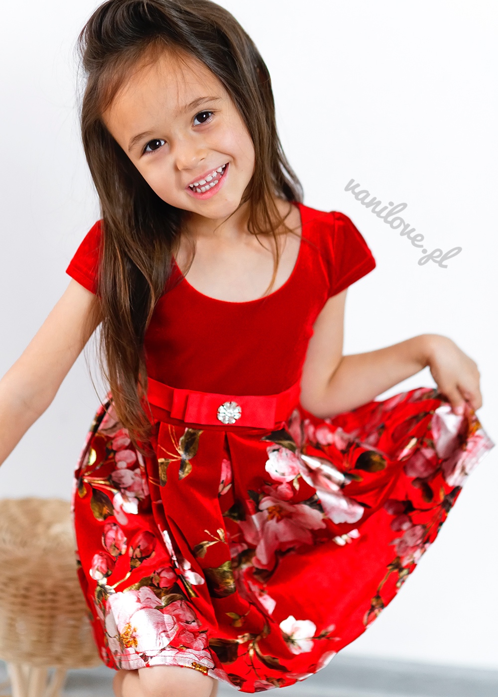 Sukienka welurowa dla dziewczynki Amanda Flower Red