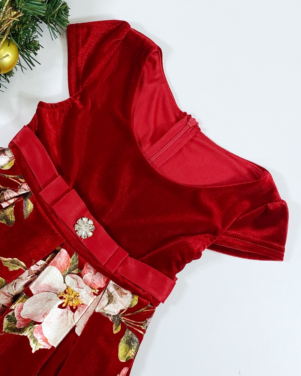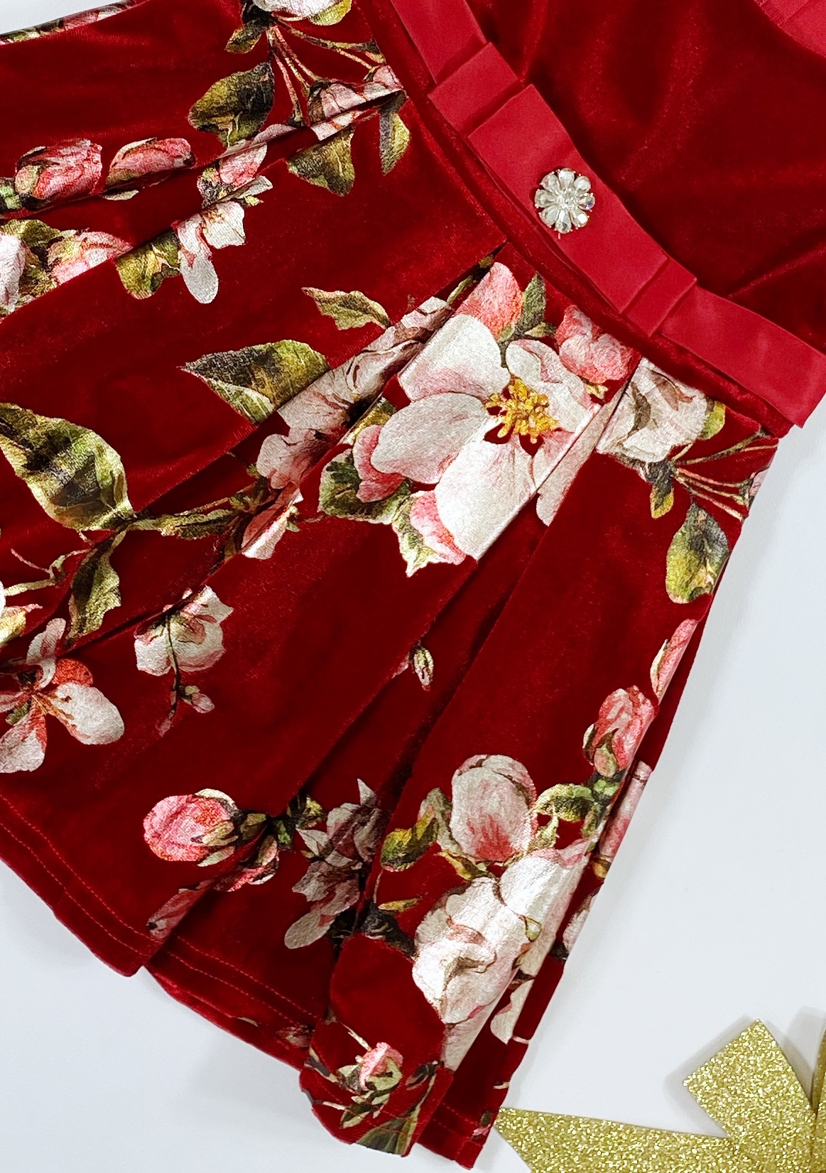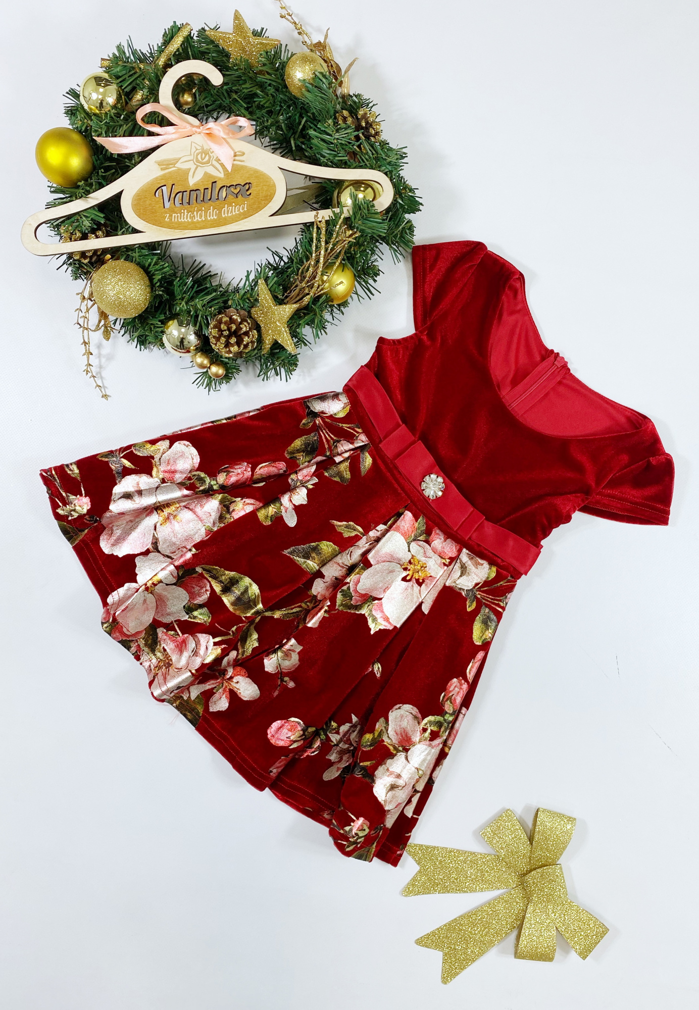 Sukienka welurowa dla dziewczynki Amanda Flower Red