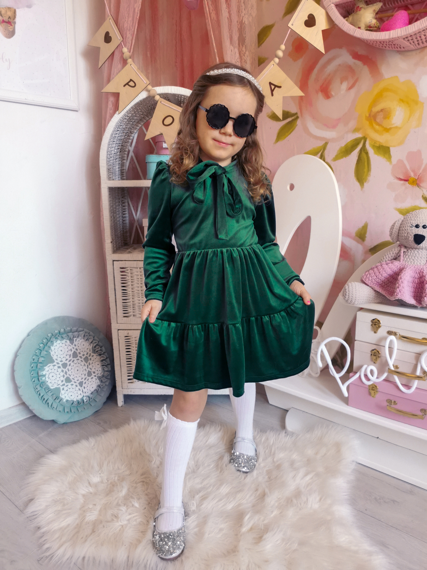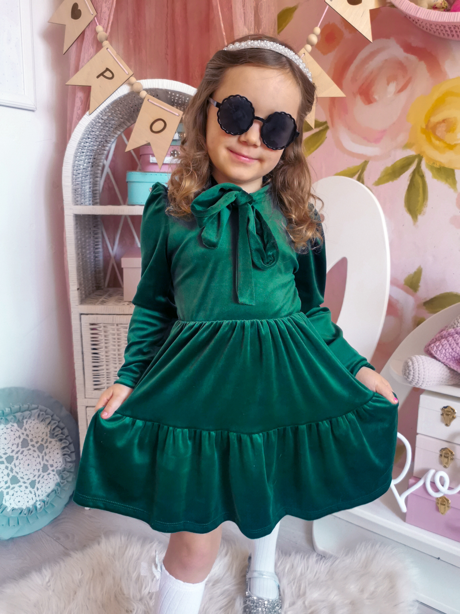 Sukienka welurowa dla dziewczynki Lorettina Green