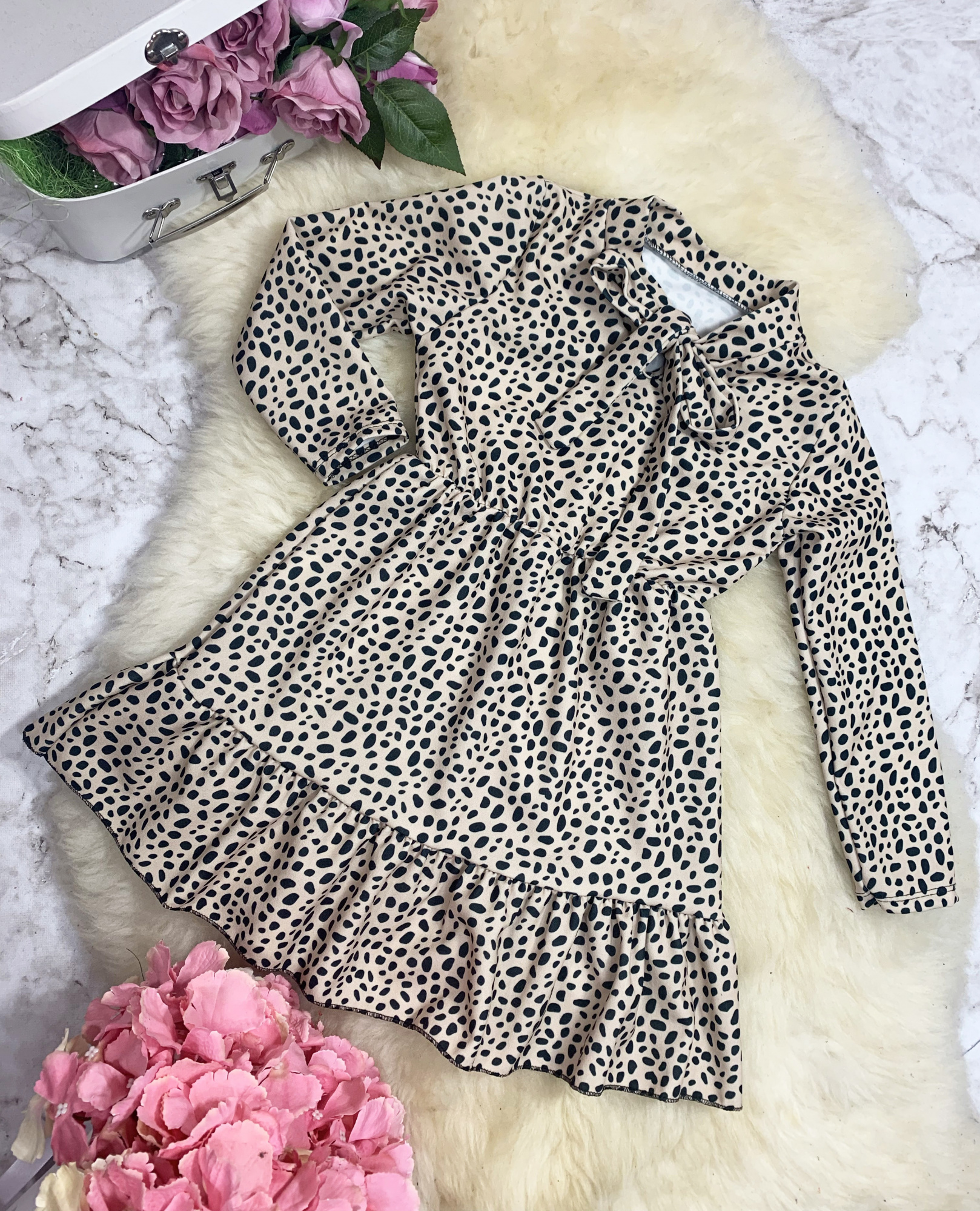 • elegancka sukienka z gustownym wiązaniem w  kokardę