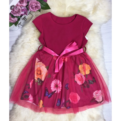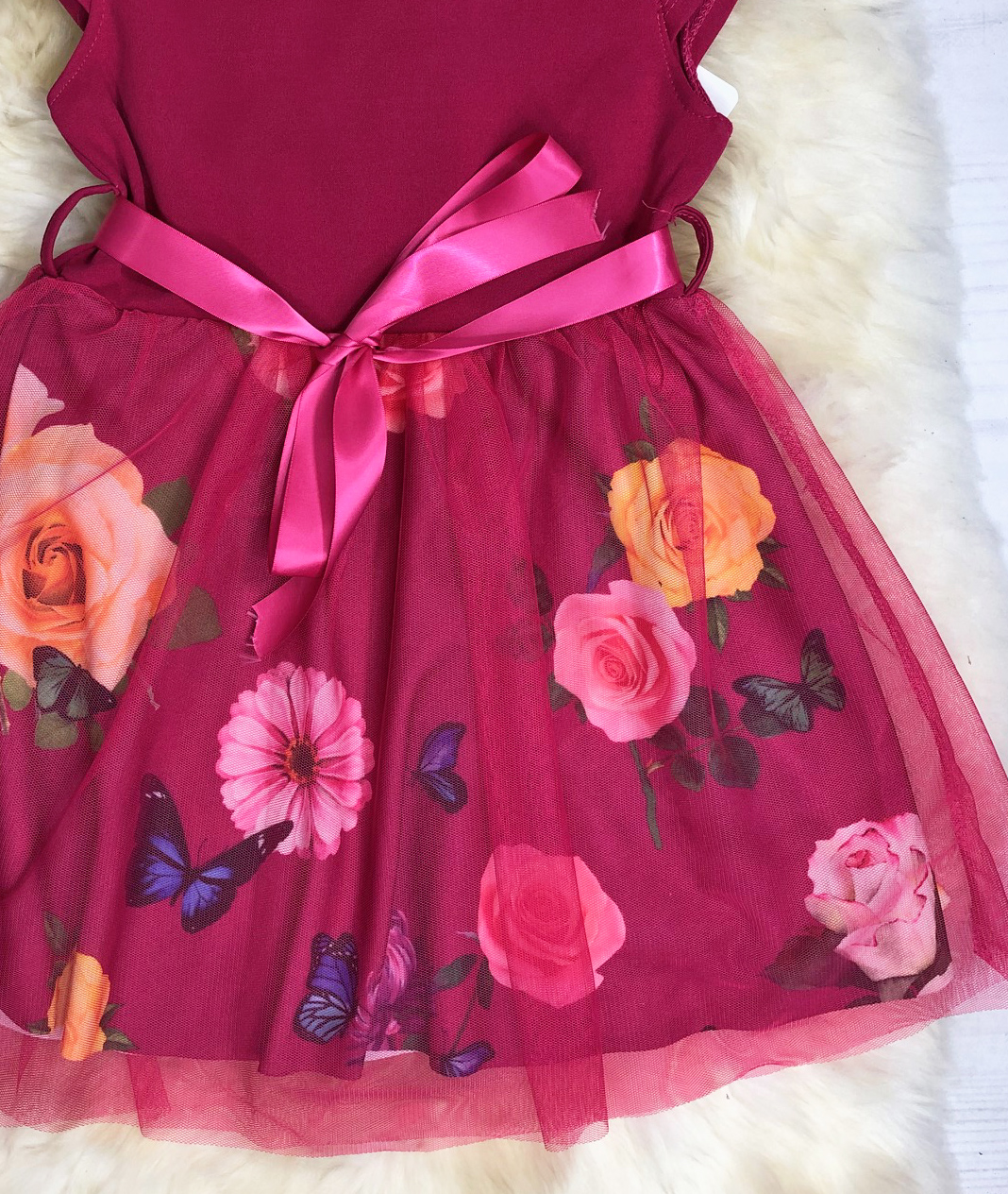 - ozdobiona kwiecistym wzorem z motylkami oraz delikatnym tiulem