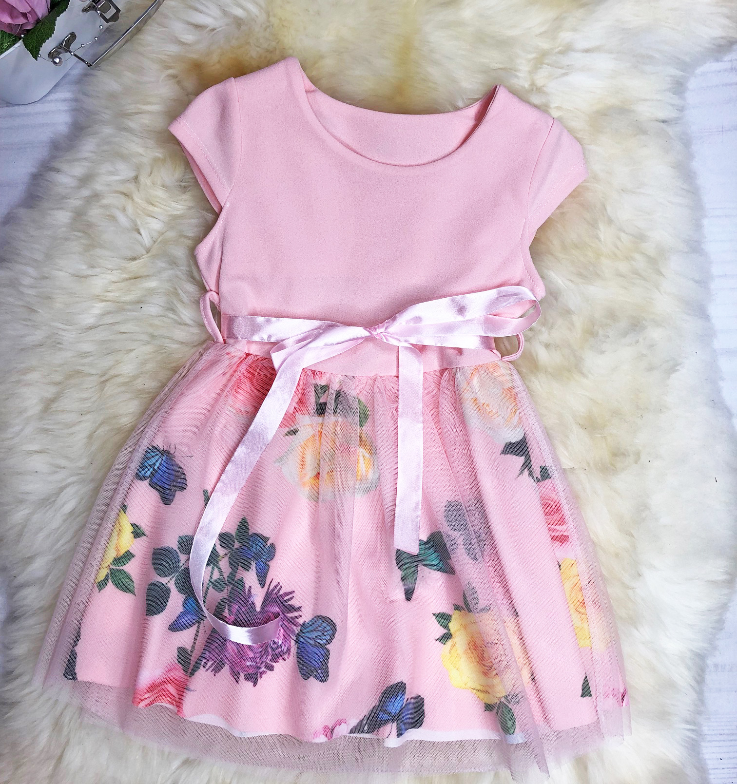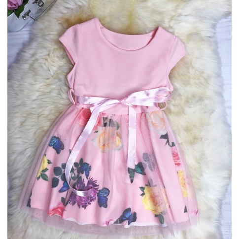 - ozdobiona kwiecistym wzorem z motylkami oraz delikatnym tiulem