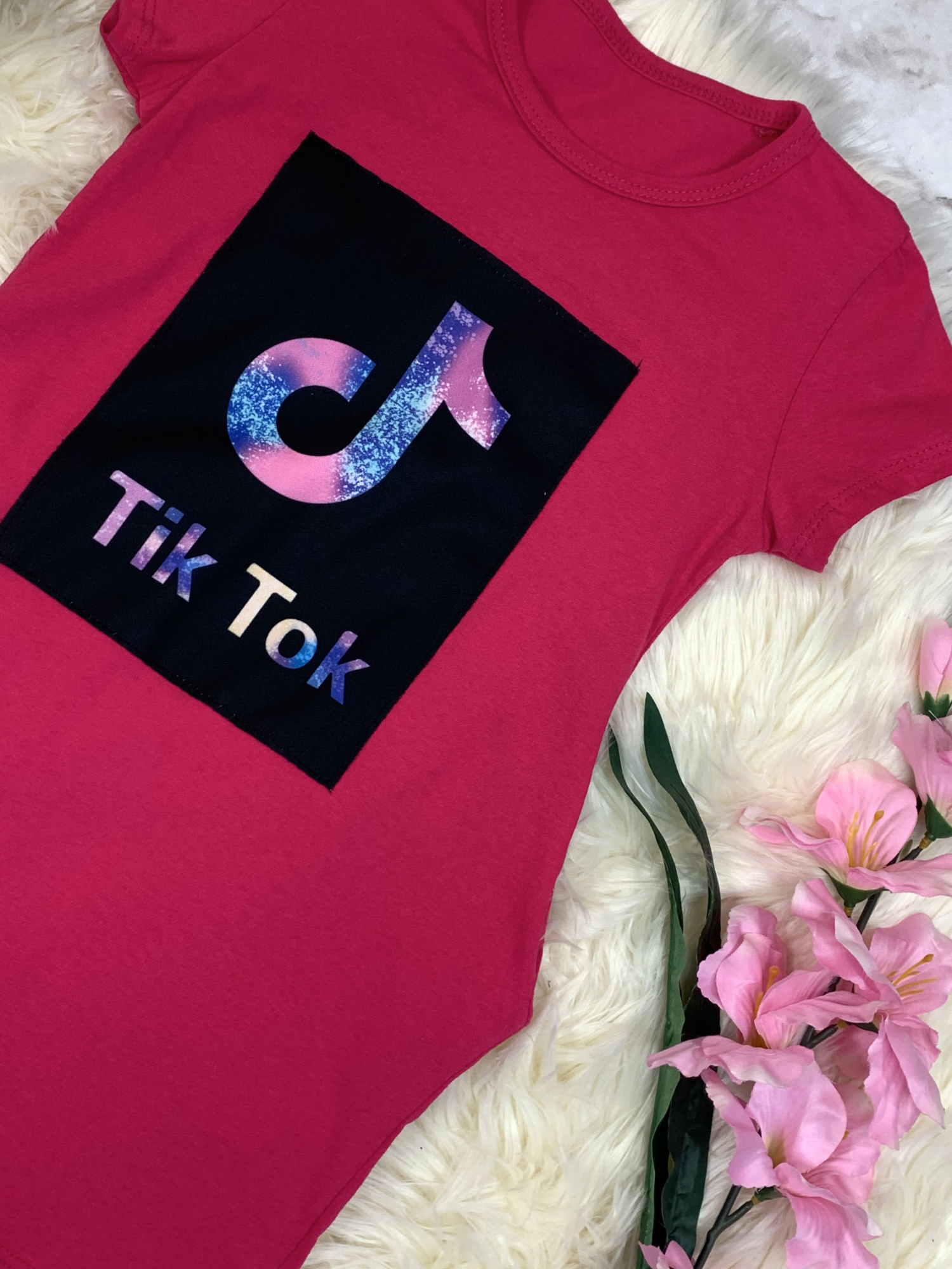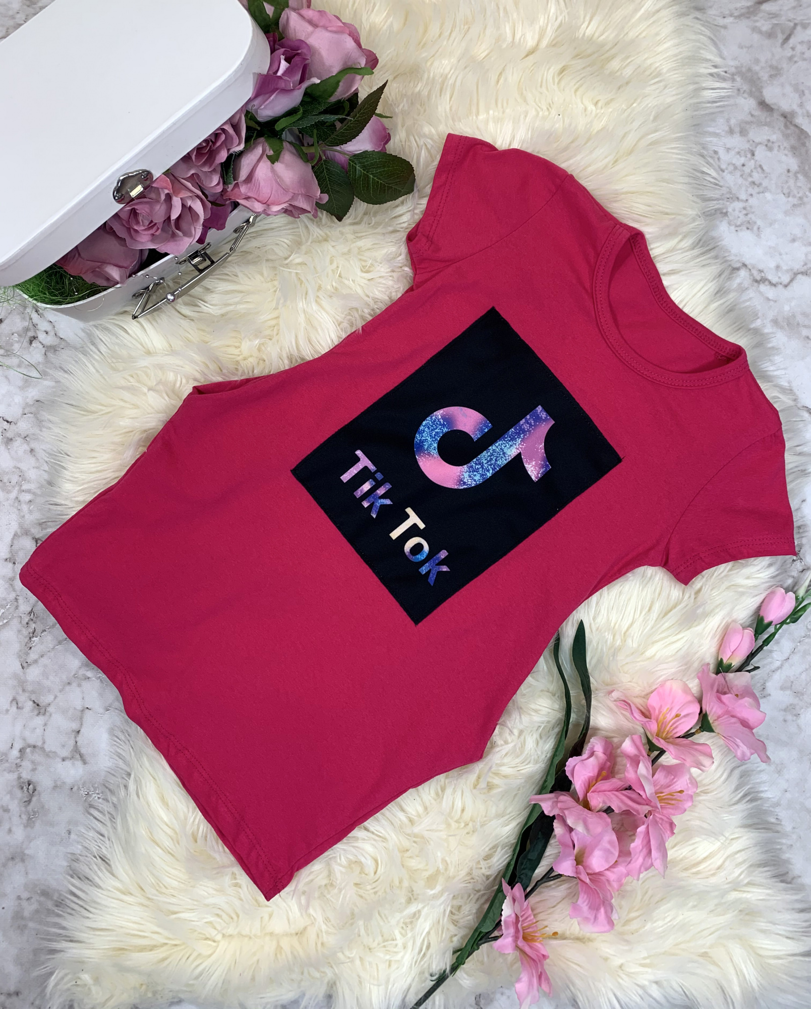 - model ozdobiony naszyciem modneg Tik Toka