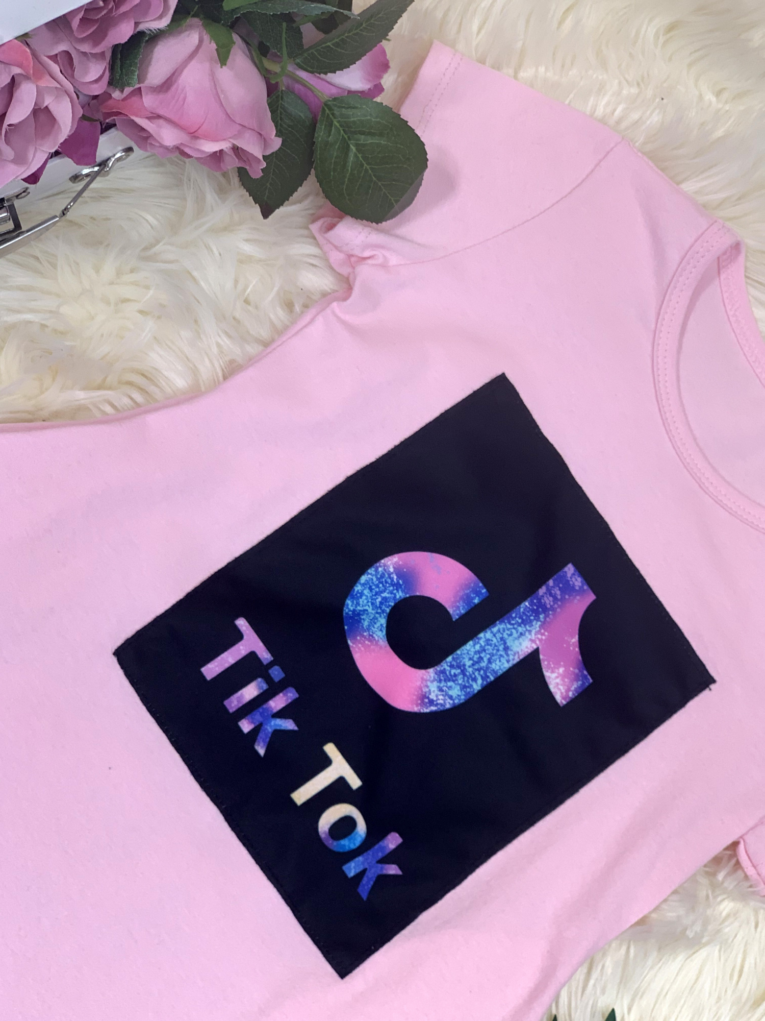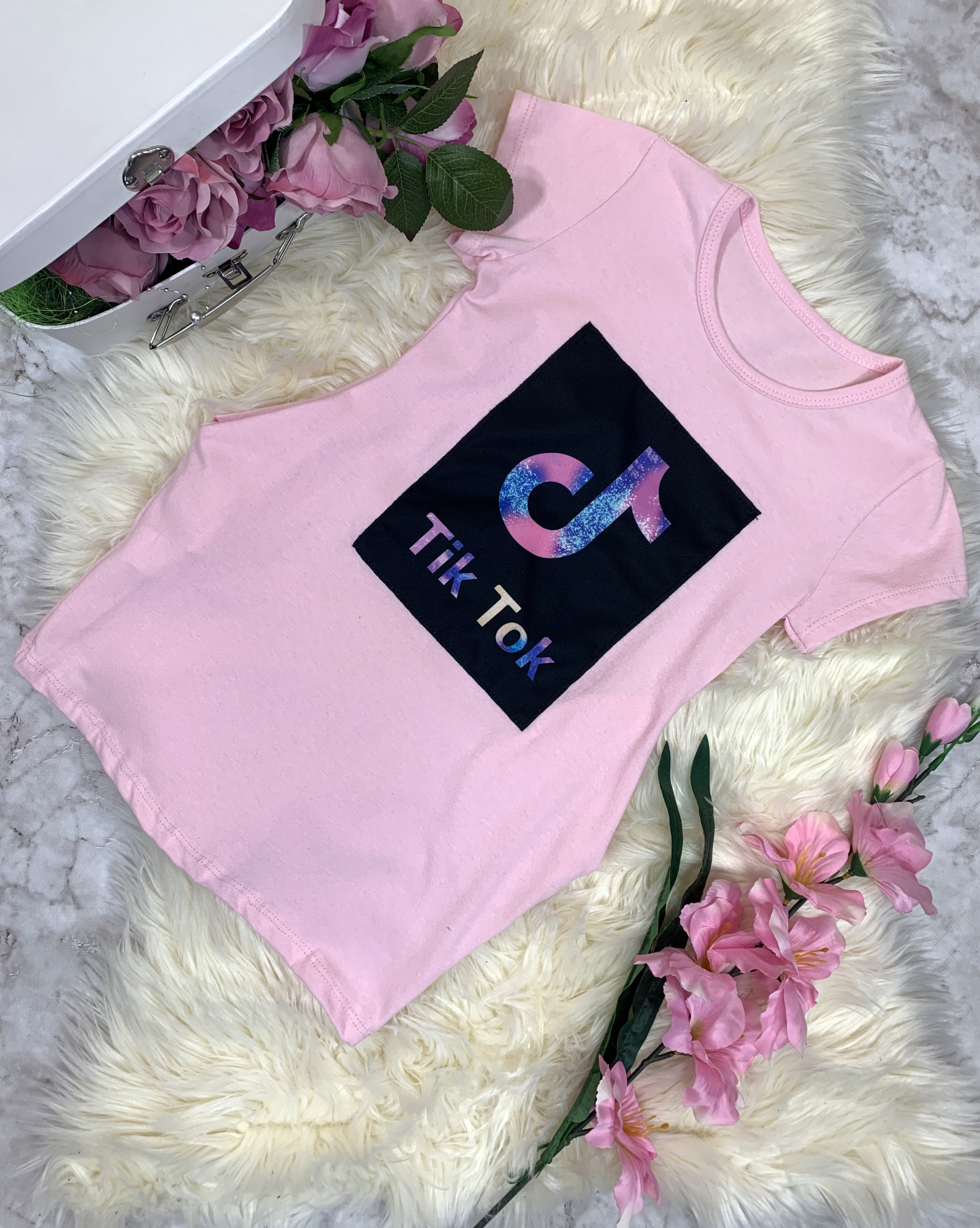 - model ozdobiony naszyciem modneg Tik Toka