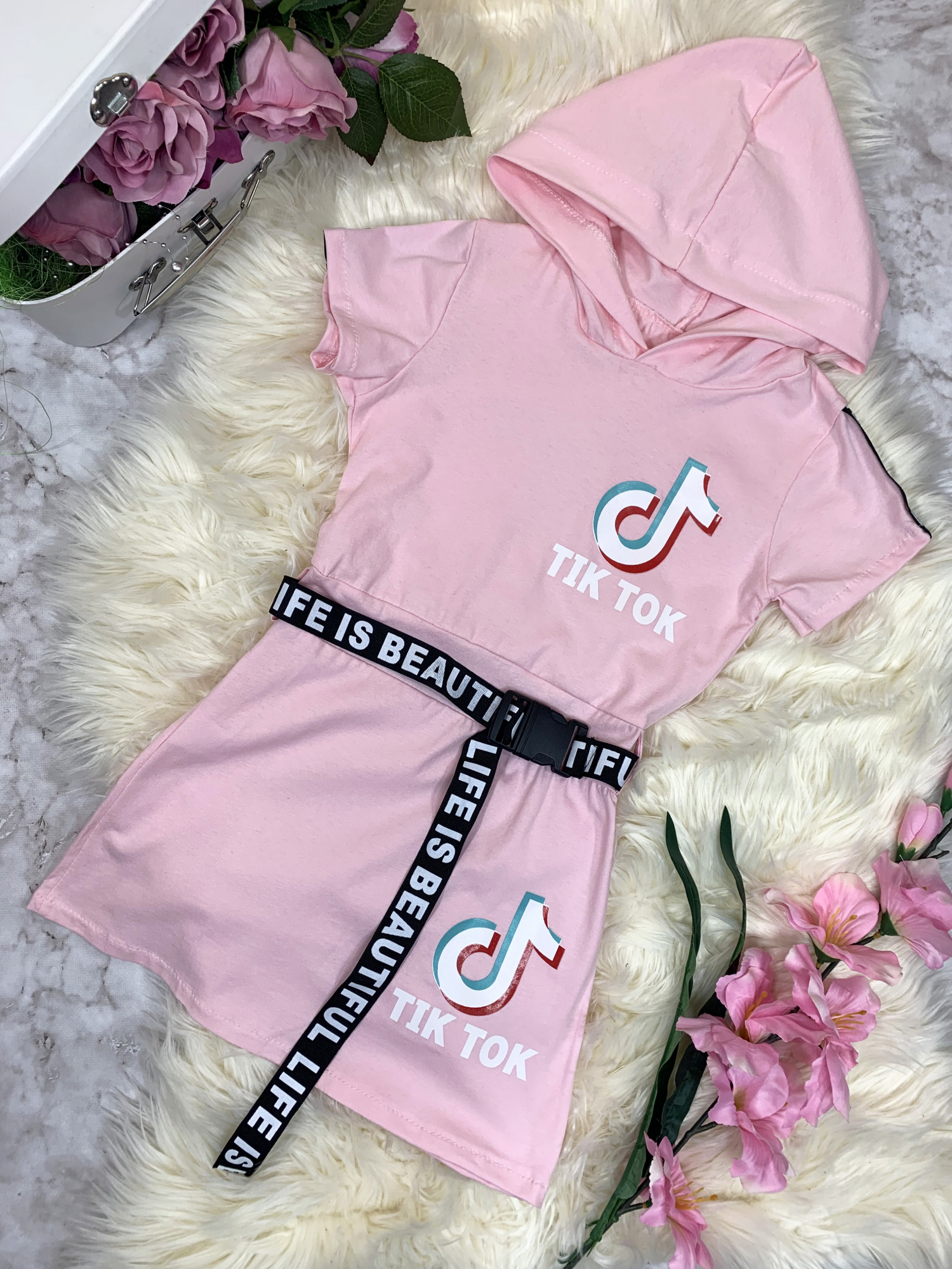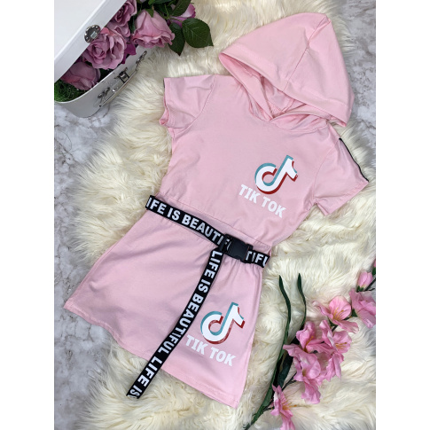 Sukienka/Tunika z kapturem Tik Tok - PINK