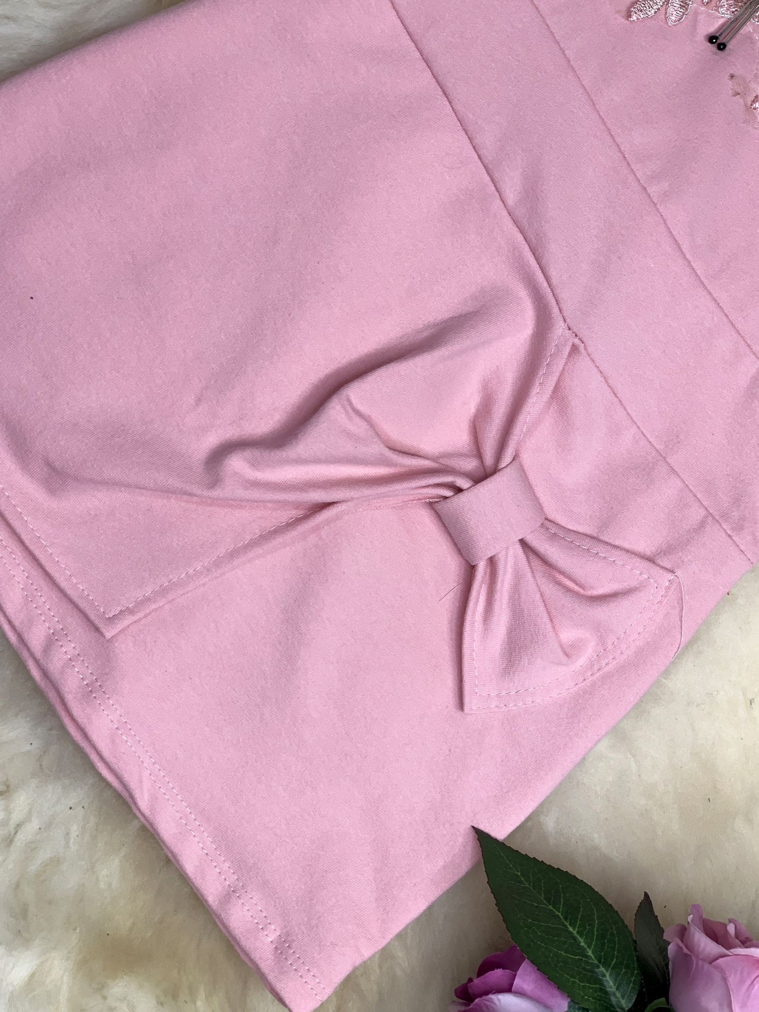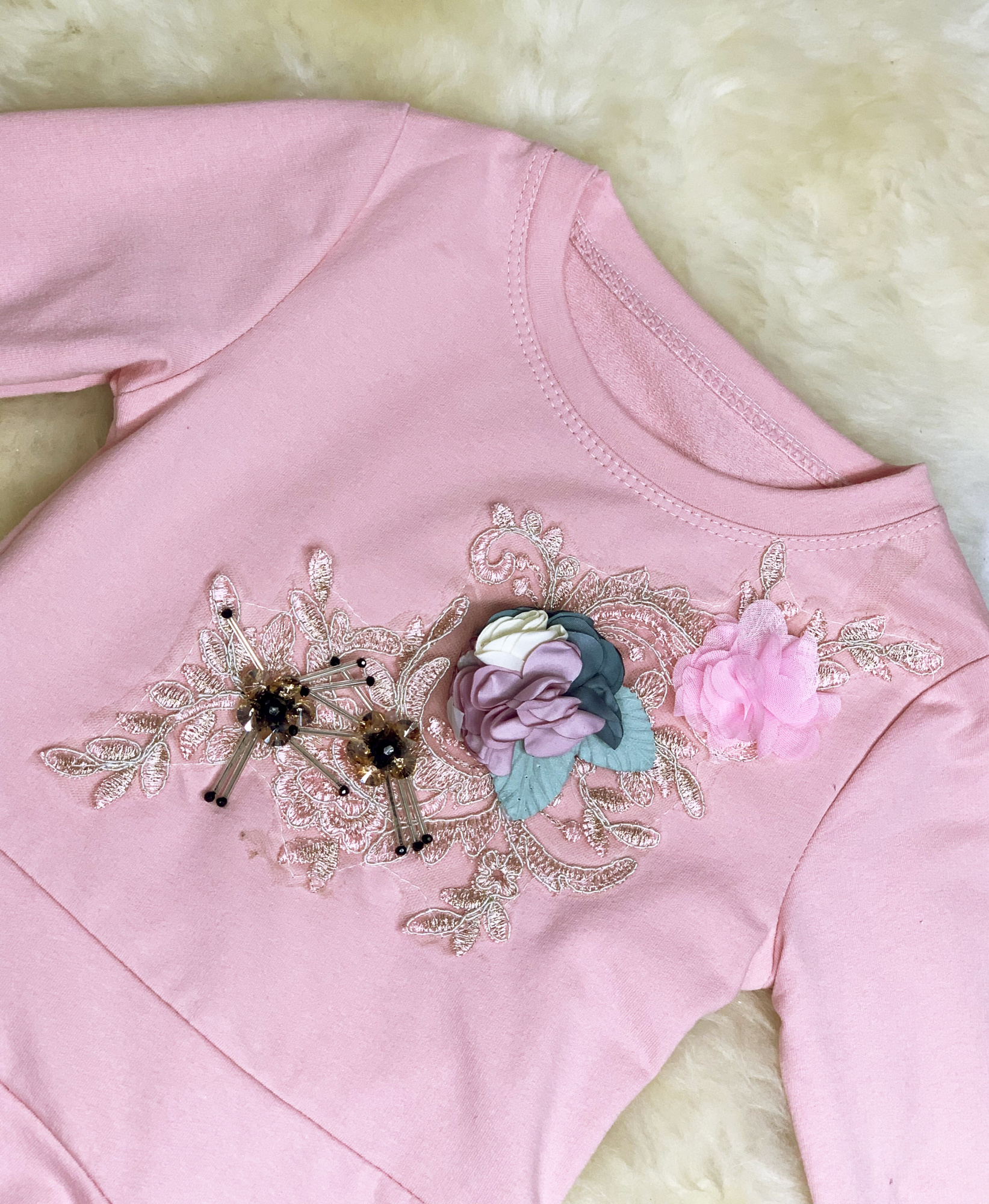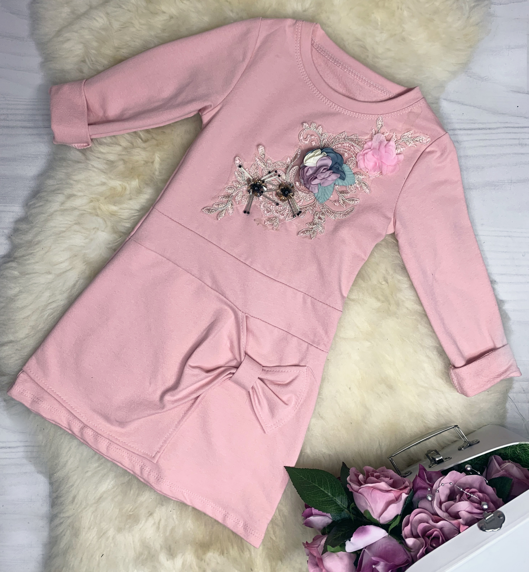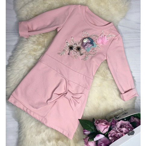 Sukienka/Tunika z kwiatowym haftem - kolor różowy
