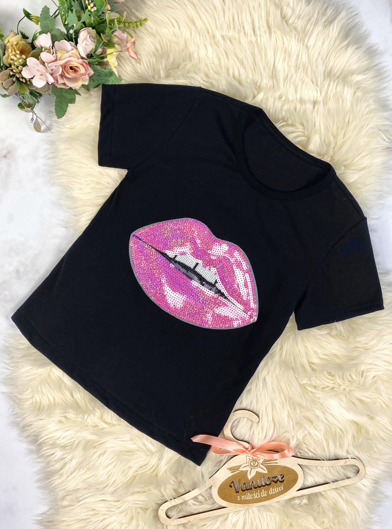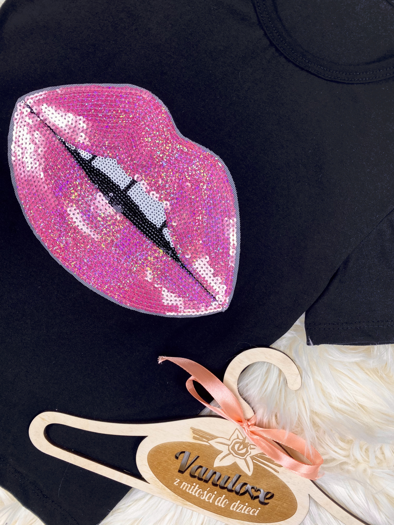 • T-shirt posiada cekinową naszywkę w ksztacie ust