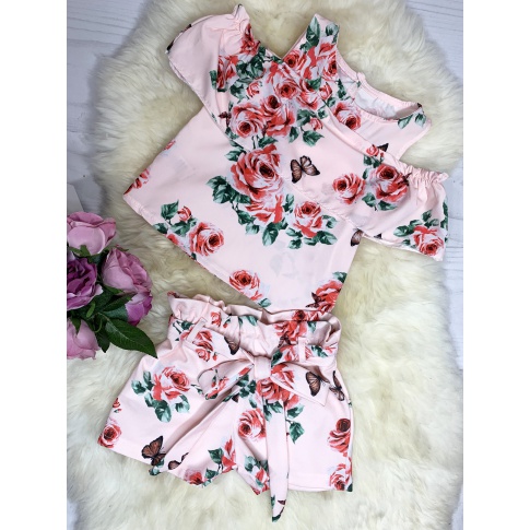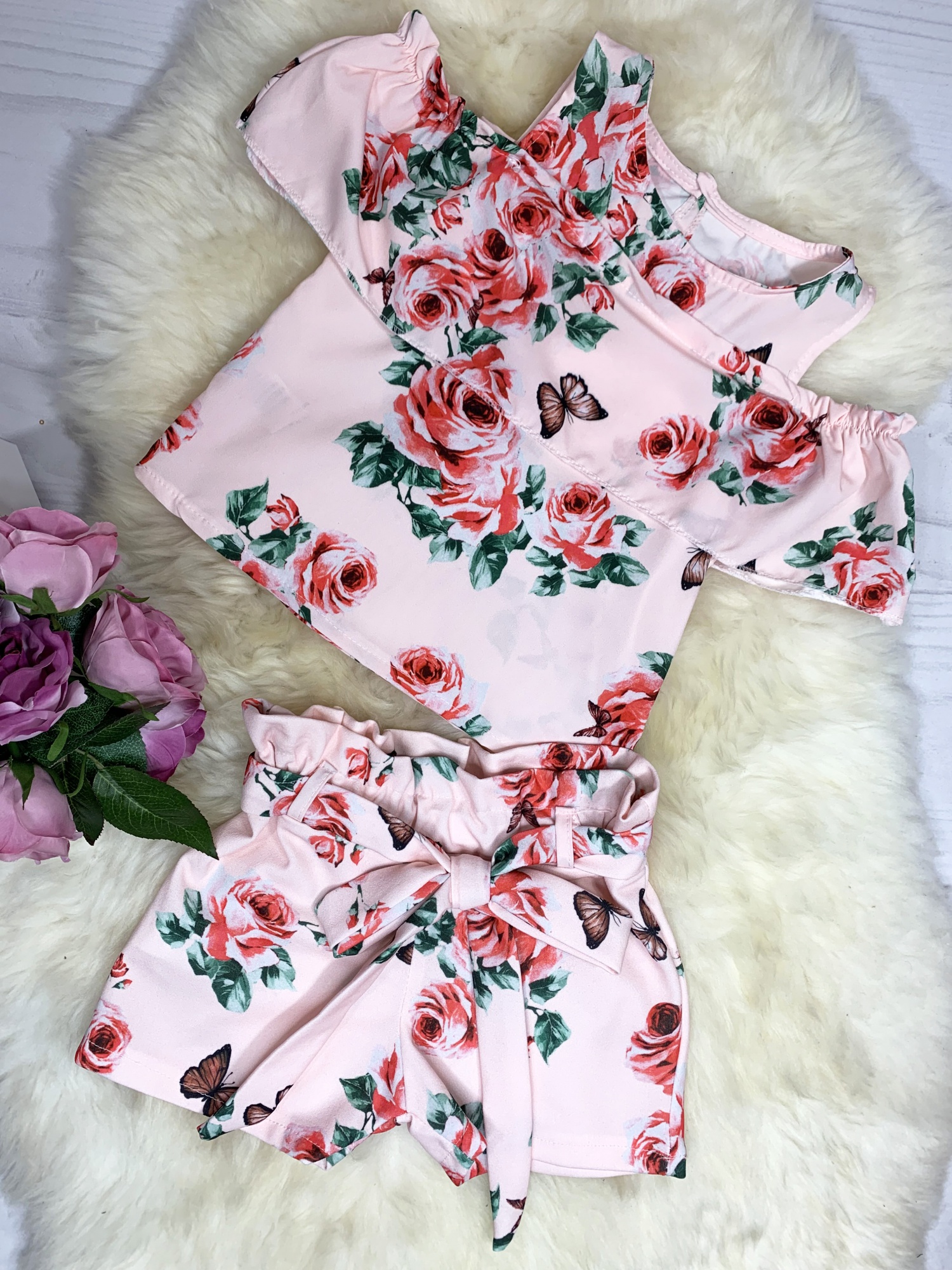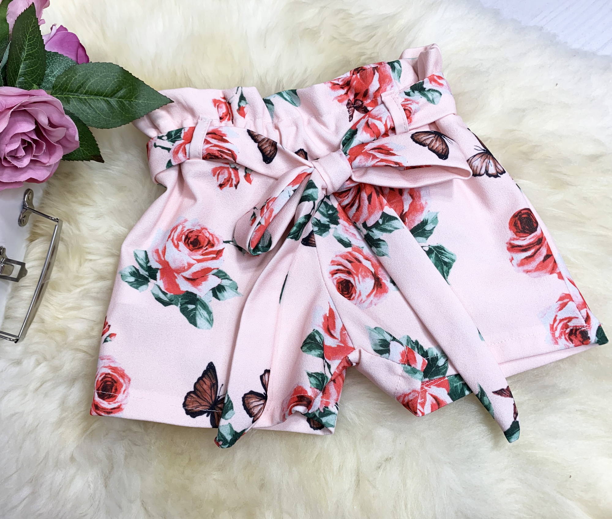 • spodenki z troszę grubszego materiału niż bluzeczka z gumką w pasie i ozdobnym wiązaniem na kokardkę
