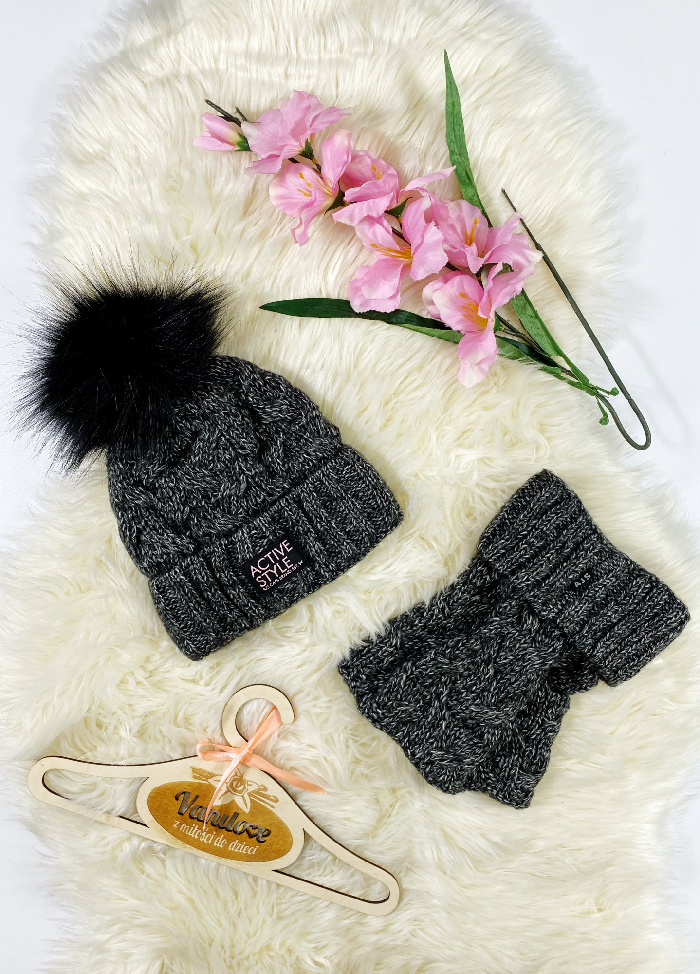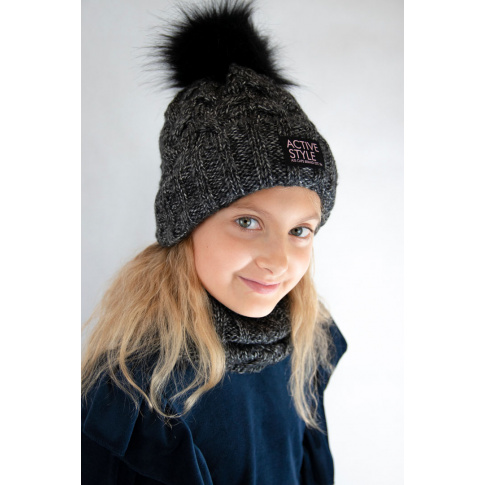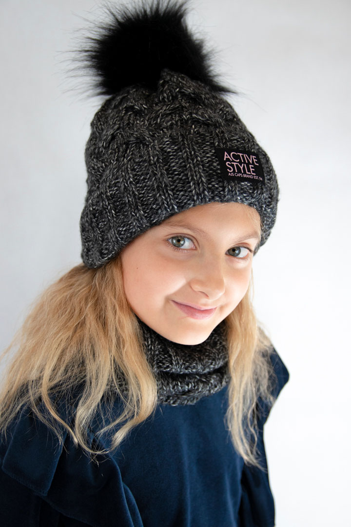 WINTER Dziewczęcy Komplet Czapka + Komin Amy Grey