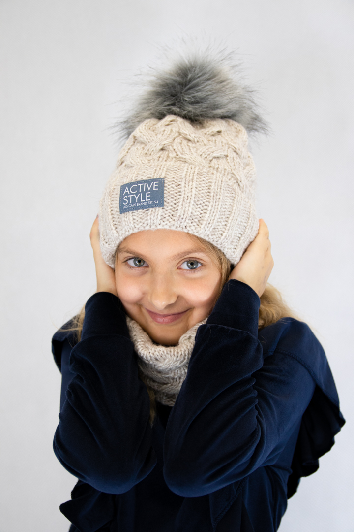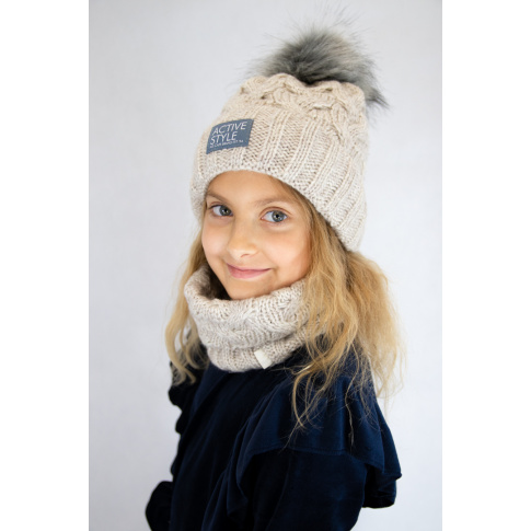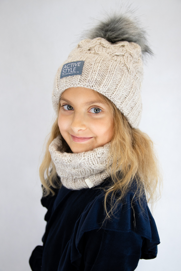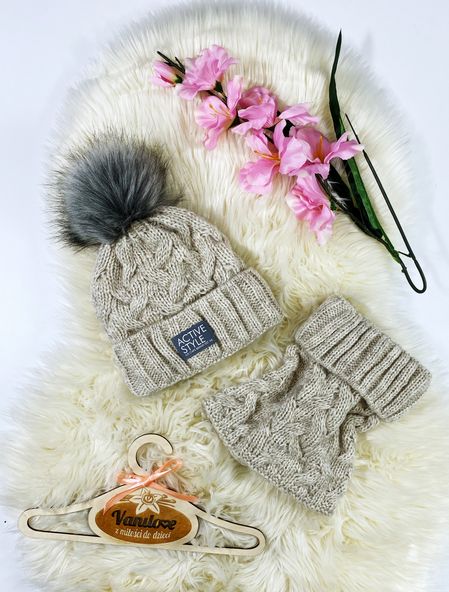 WINTER Dziewczęcy Komplet Czapka + Komin Amy Sand