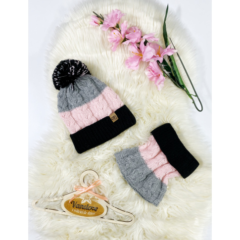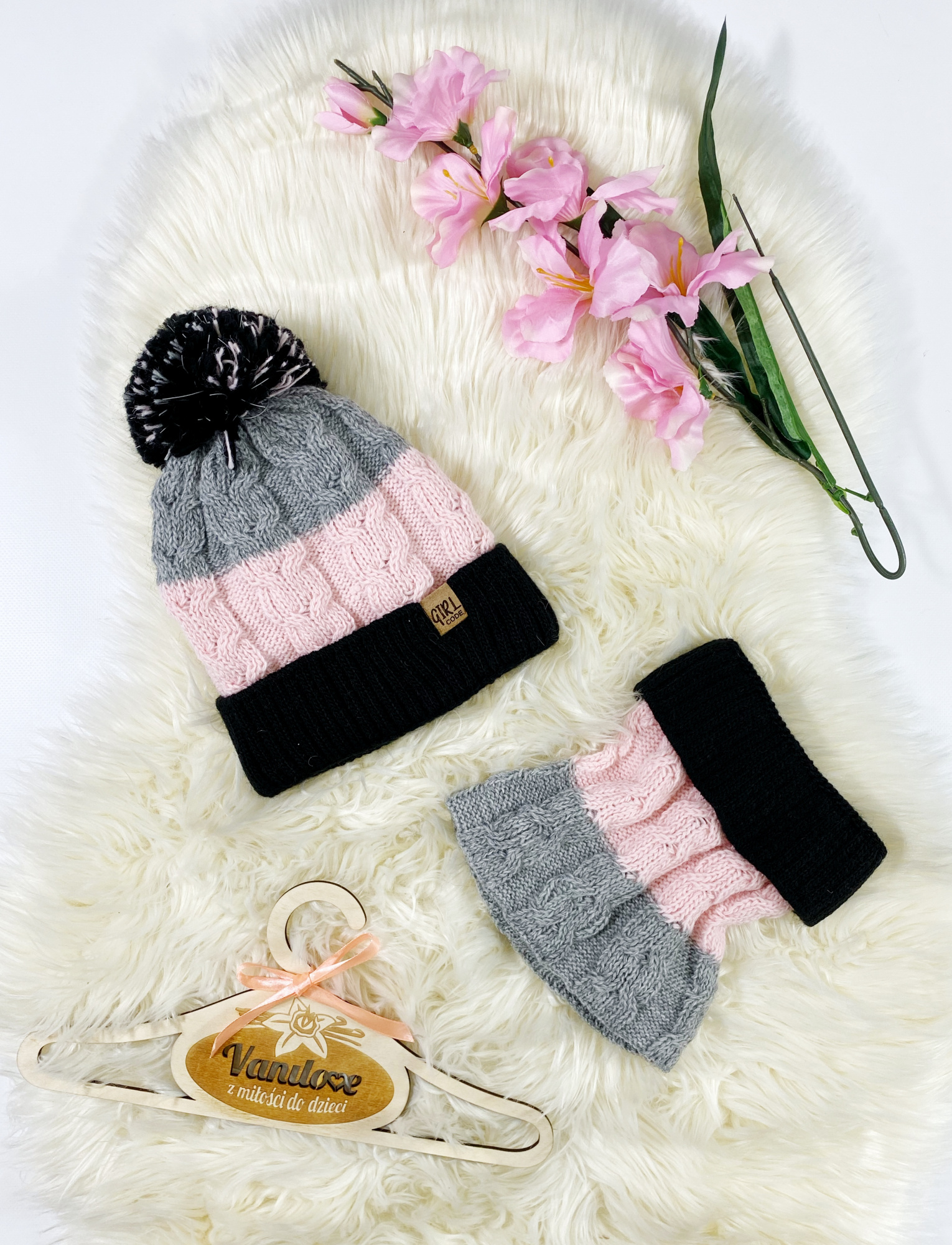 WINTER Dziewczęcy Komplet Czapka + Komin Lisa Black