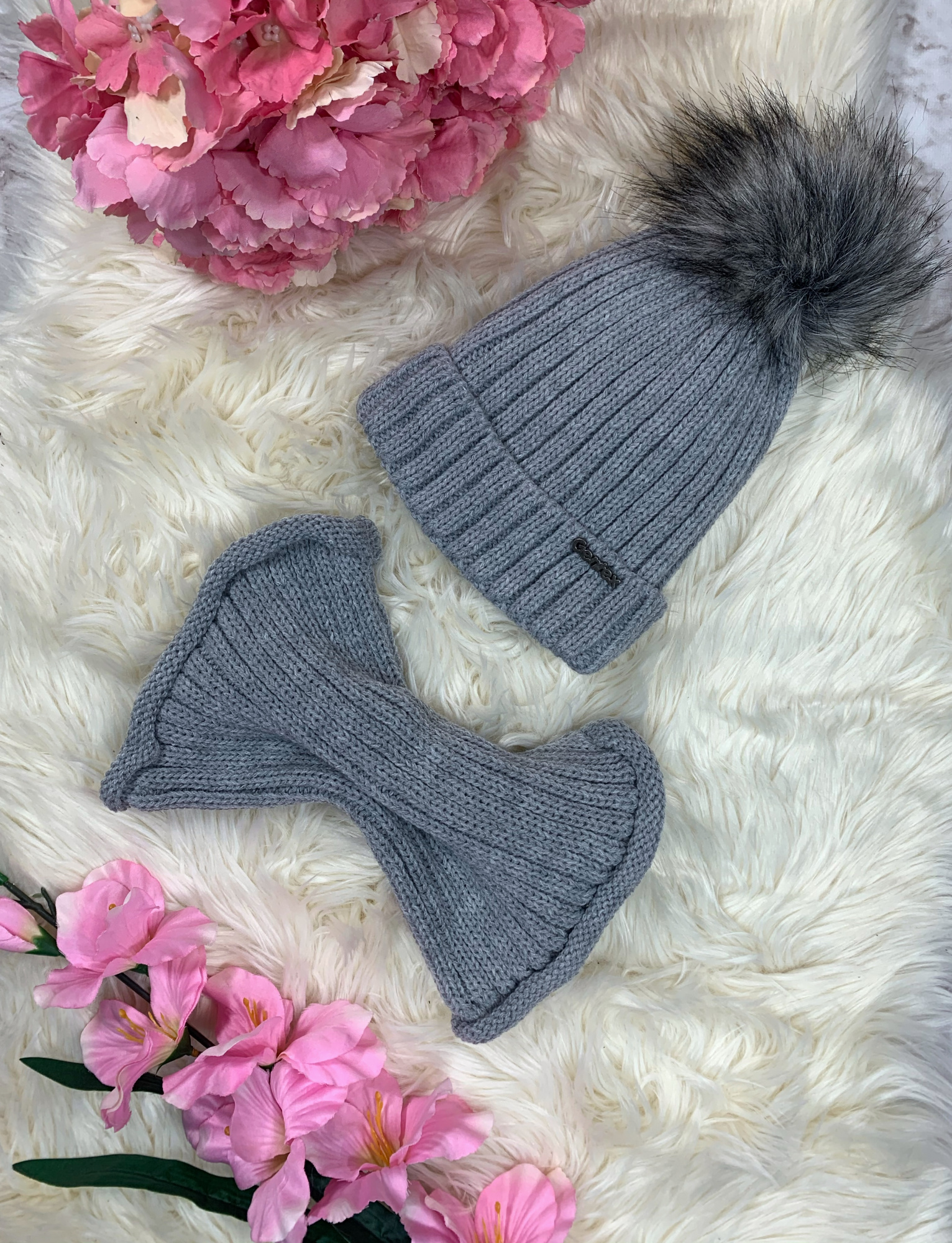Komplet Czapka + Komin-Szary