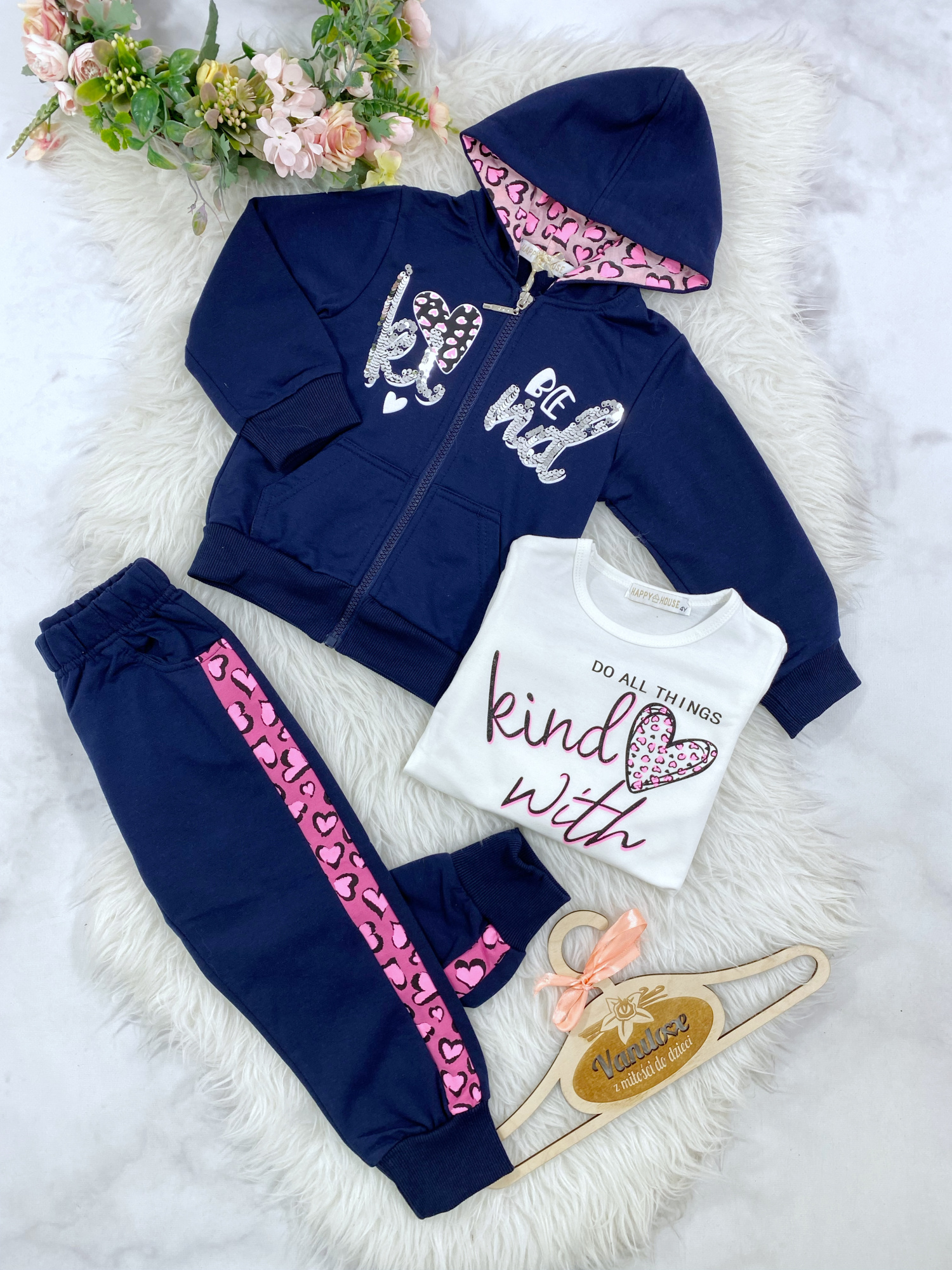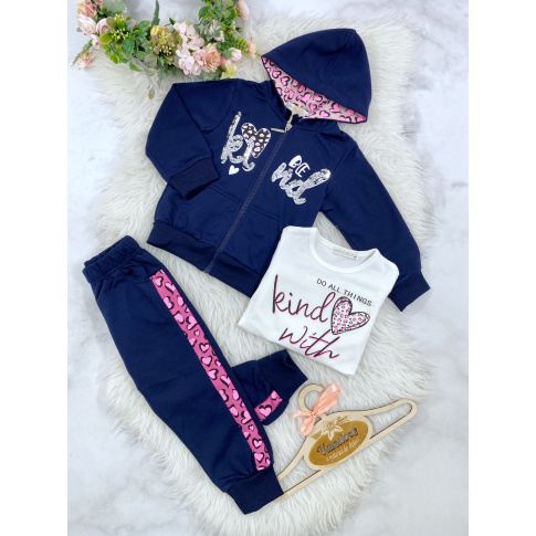 • komplet składający się z trzech części: bluza z kapturem, bluzka oraz spodnie