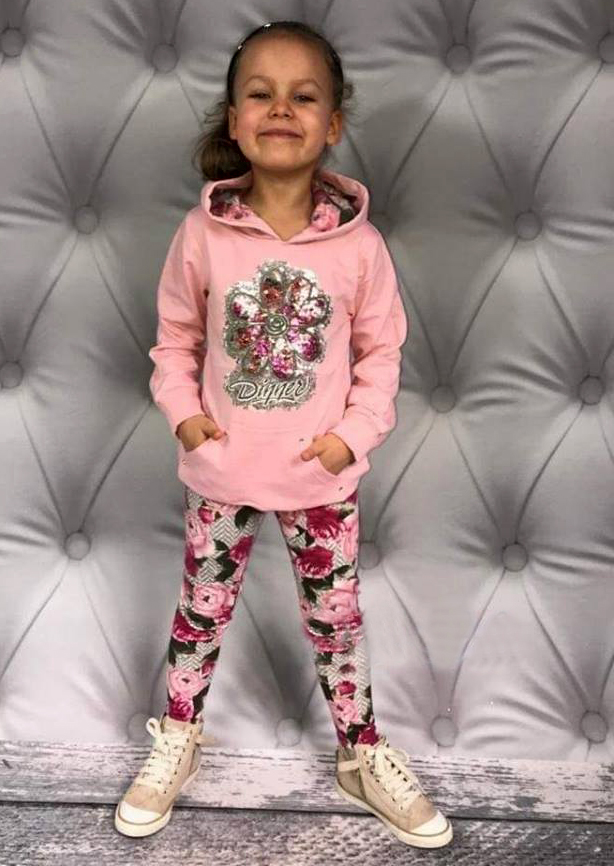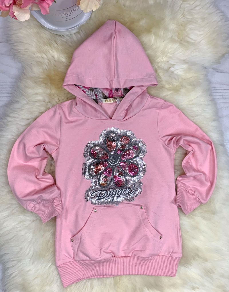 - ozdobiona cekinami w postaci naszycia kwiatka