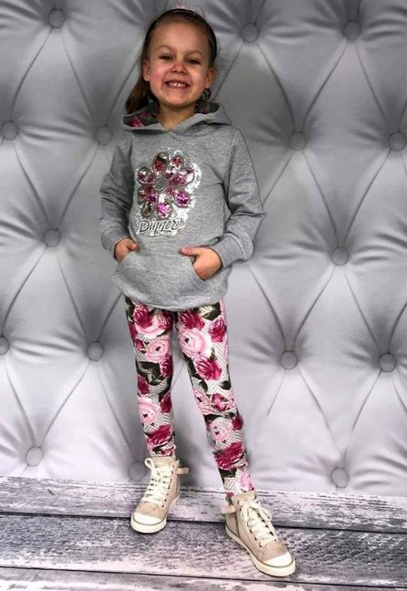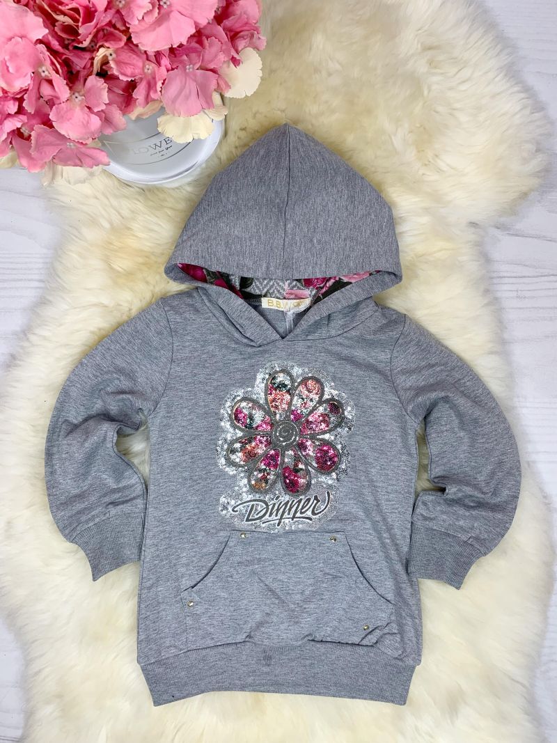 - ozdobiona cekinami w postaci naszycia kwiatka
