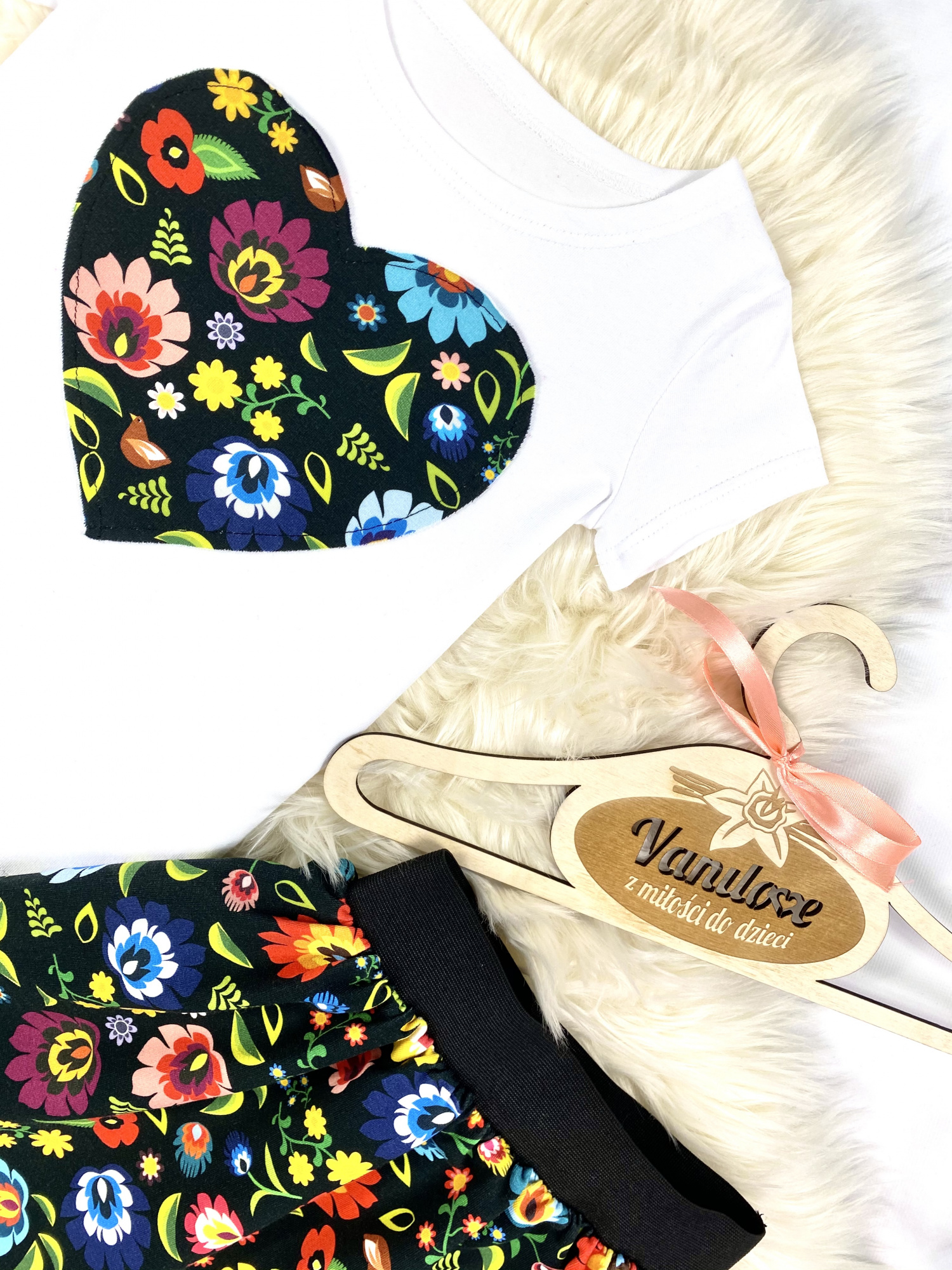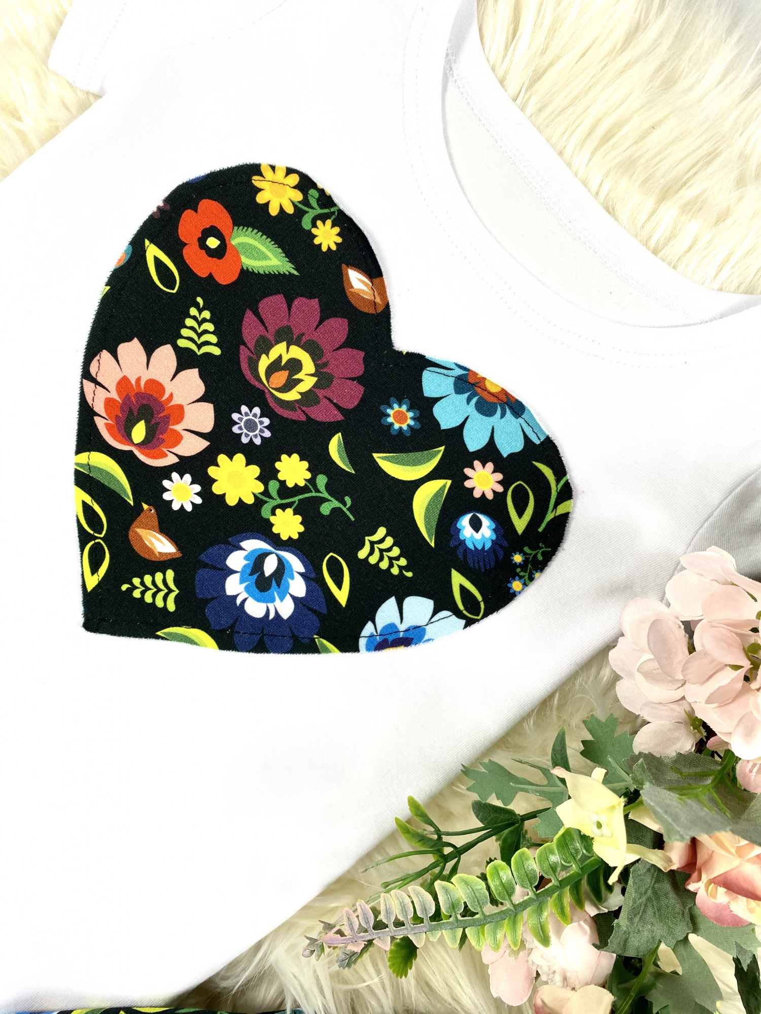 • bluzka zdobiona naszywką w kształcie serca nadającą stylizacji spójność